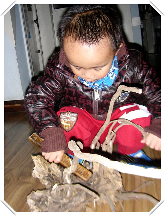后来要拎着树根上楼玩......