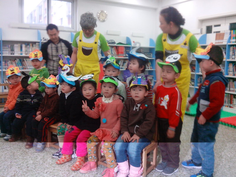 昨天,彤彤去了石景山少儿图书馆演儿童剧了。虽然下着大雨,但是参加的人还是很多。