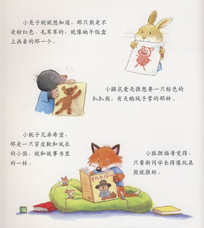 以前我家宝宝也不爱干净,我经常说她,说要饭前洗手,宝宝每次都在我的监督下,很不情愿的去洗手,但在她读完这本书后,便开始乖乖的自己洗手了,我便逗我家孩子说:“我家宝宝最近变乖了呀,怎么知道饭前要洗手了呢?”宝宝俏皮的跟我说:“因为我要变得和塔利维亚一样乖,她最后都养成了爱干净的好习惯,我也要学习她,做个乖宝宝。”听了我家宝宝说的这几句话,我忽然明白了有时候好书比讲一百遍道理更有作用,也许,只有孩子用自己的眼睛读出的东西,他们才更容易接受吧。 和平常一样,附上几张插图,希望亲们喜欢~~ ![]() ![]() ![]() ![]() 今天推荐的第二本书是《我爱波波熊》,这本书我家宝宝十分的喜欢,波波熊长得圆滚可爱的,故事情节生动有趣,讲述的是一个关于接受的故事,宝宝跟我说“开始时大家不喜欢那么丑的波波熊,但到后面在波波熊救了小动物后,大家都非常喜欢它了,妈妈,我觉得波波熊不丑,它心灵是美的。”我笑着点点头,的确,美并不仅局限在外表,更重要的是内心,每个人都是有自己的优点的,我们要用欣赏的眼光看待别人,这样才能看到每个人的美。我家宝宝说,“妈妈我明白了,我以后一定不会以貌取人,会用心读懂每个人的。”我想好的书应该是让孩子明白一些道理的,这本书就让我家宝宝在轻松阅读的过程中,明白了很多,觉得它很有用,今天也就在这和亲们分享了,希望亲们和我一样喜欢这本书。 ![]() ![]()