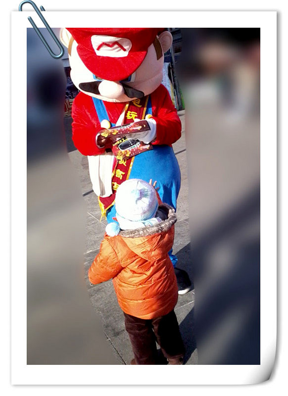 2011年圣诞节为了加强谦谦对给节日的理解爸爸和妈妈特意带着谦谦去商场感受过节的气氛了。可是小家伙对商场门口的圣诞老人还是没啥感觉的,倒是对这个卡通人物非常的喜欢,主动上前去要宣传单呢!商场里很热闹,可是美了谦谦,到处的乱跑乱摸的,妈妈和爸爸就是个追啊,商场成了小家伙的游乐场了,其实孩子的心里根本就没有圣诞节的意识呢,玩的开心倒是真的。最后带着谦谦离开商场去了游乐场,赶上该游乐场装修于是没有玩成。作为家长会感觉些许的遗憾,可是谦谦却浑然不觉呢,小家伙想要气球,抱着心爱的气球一家三口去吃热乎乎的火锅了。