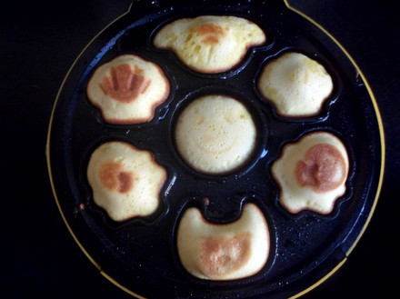 一直都很喜欢吃蛋糕或者是小饼干,每次都是出去买的。 自己吃就无所谓了,只要能吃又美味就可以! 可是现在有了小宝宝,总觉得那些都有防腐剂不好。 所以,干脆自己给宝宝了DIY了无水蛋糕。 制作方法: 1.鸡蛋两个,加少许盐,打撒。 2.再打撒的蛋液中加入白糖(我放了三汤匙,可是根据自己的口味添加。),继续打至起泡。 3.在起泡的蛋液中加入自发粉,大约100g,豆油(色拉油什么都可以)我放了两汤匙,大约20g,搅拌均匀备用。 4.蛋糕机预热2分钟,然后涂上一层油,然后将搅拌好的材料倒入蛋糕机的卡通容器里,盖上盖子。 5.5分钟后,美味的蛋糕就可以出炉了。