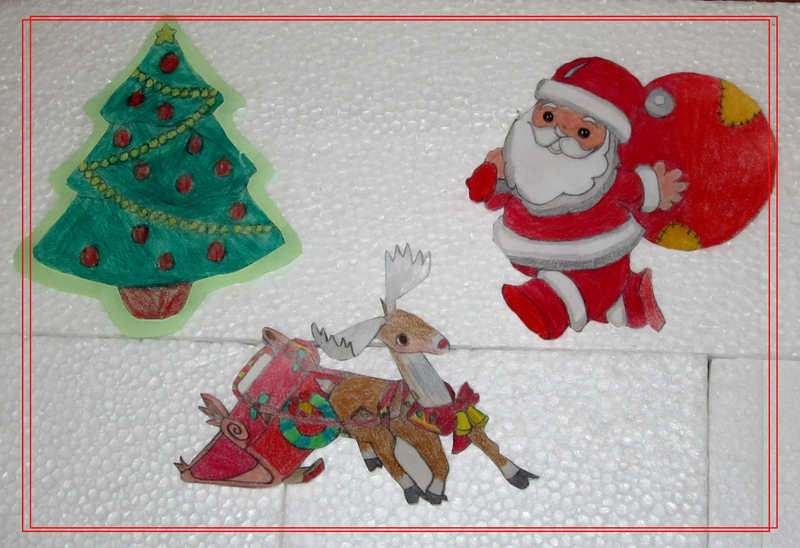 【圣诞节手工作品】+一幅立体的圣诞老人送礼物画+sphia