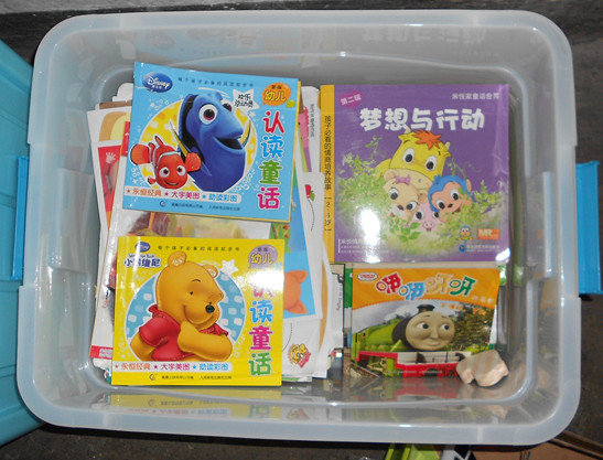 一直听老公说再拿个储物箱回来,可就是一直没见动静。一个是年底的事情也多了,再加上老公也比较健忘,我也懒得说他了,反正等他想起会自己拿回来的。 昨天晚上,在听见他敲门声时,(我家的有个不好习惯,回家非要敲门,都不自己拿钥匙开门的,除非是我在里面房间睡着了,没听见,他才自己拿钥匙开门的。)我一打开房门,就看见大门外两个大箱子堆在门口了,而老公又是按照惯例躲在门外,等罐罐去找他。呵呵。这是两父子每天必玩的游戏。 等这两父子玩一会后,才赶紧把东西拿进来,一看,一箱是在公司买的纸巾,一个就是新的储物箱,而且里面还有其它的宝贝呢。 看看里面都有什么宝贝吧。 有8瓶麻油,2瓶衣领静,一个保温的折叠袋子,还有6个塑料果盘 哈哈,就是这种麻油,怎么也要20几一瓶吧,而且瓶子还是塑料瓶的,这样就更方便了,不容易摔烂。这么几瓶,我家肯定是吃不完了,正好给我妹妹和我妈妈她们一家拿两瓶去,有好东西肯定是要想着家人了,呵呵 哈哈,原来这个塑料果盘是方便面的赠送品,很实用的 看看罐罐已经是迫不及待的把小吃放在盘子里面了,这样就免得他东放西放的 本来罐爸是说把储物箱拿来装罐罐的玩具,可我想了想,应该这个箱子装不完那些玩具的,太多了,干脆拿来装书,还实用点,也可以更好的保护这些绘本了。 等到我装好后一看,原来也就是不知不觉的有满满一箱了,看来去年的收获不错呀。今年还要继续。呵呵