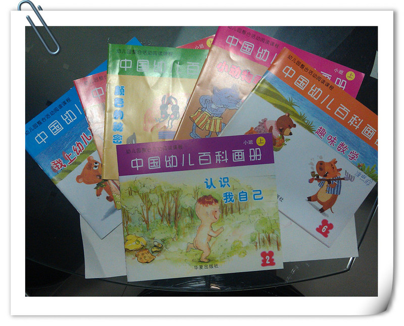 点点上小班已经一学期了,每天放晚学回来都会表演一些儿歌,故事什么的,这些儿歌,故事老师都会及时放到点点他们班级的网站上的,本来我觉得有些东西以为是校本教材,没有书的,不过这次发了6本书回来,我细细一看,有很多东西都是书上的内容,不过老师也教了很多书上没有的内容,算是补充教程吧。