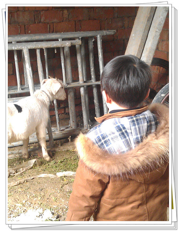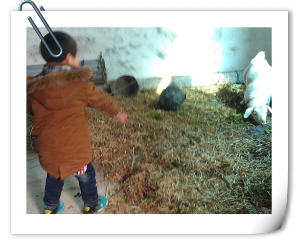 点点每一次回老家,都会到奶奶养鸡养羊的地方去看鸡看羊的,然后在鸡圈羊圈旁边玩一会儿,一点也不怕弄脏衣服鞋子的。这一次也不例外,回到老家才下车,就要奶奶带着去后院看羊看鸡。奶奶拗不过点点,放下手里的活儿,就带着点点去后院看了,看了几分钟就回来了,点点说:“鸡和羊都很不错,我最喜欢吃鸡蛋,奶奶多让他们生点鸡蛋哦。”