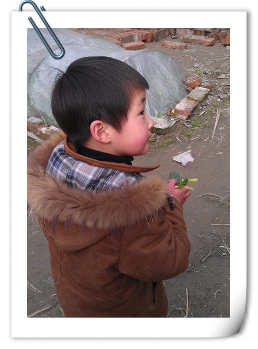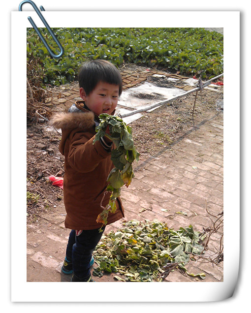 中午,吃过午饭,我们就去太外婆家吧,点点走在前面,我在后面,到了太外婆家,也要舅奶奶带点点去看羊,看了一会儿就回来了,对我说:“妈妈,你也去,那些小羊一直在叫,肯定饿坏了,我们拿点菜叶子过去给他们吃。”然后一手捧着菜叶子去喂羊了。