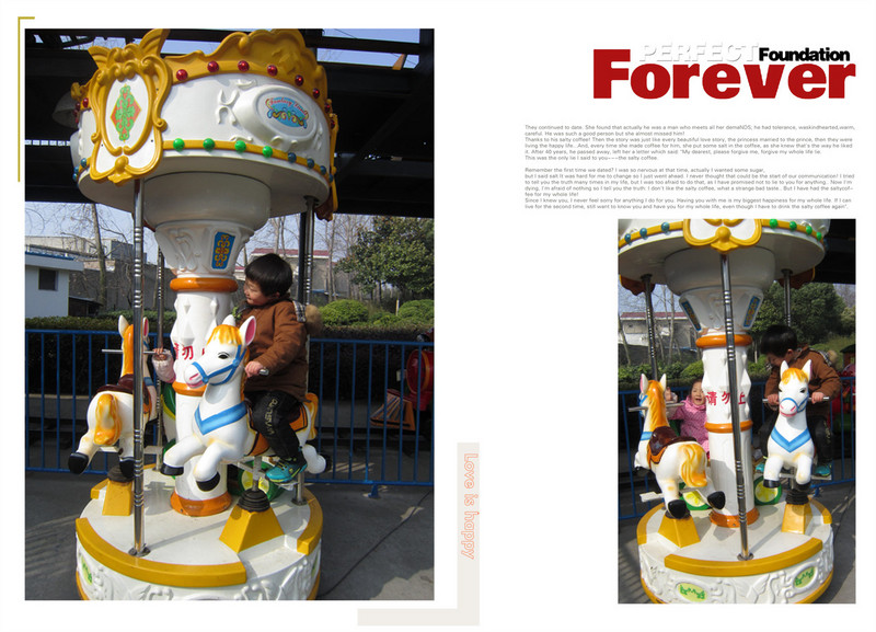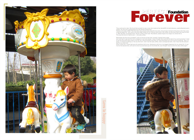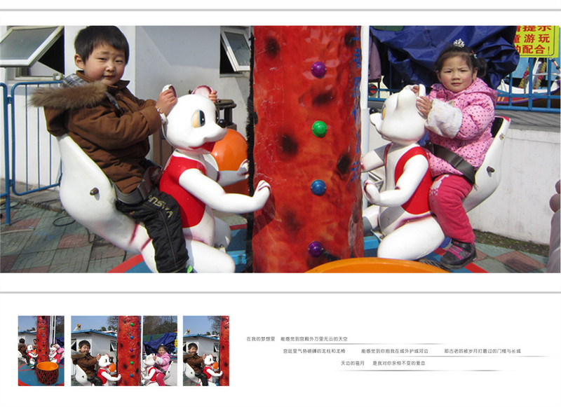 坐旋转木马,和小妹妹有说有笑的,还跟着音乐点点头。