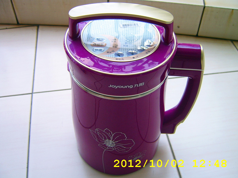 3、2011年买的九阳豆浆机:我跟着弟妹打听那个九阳豆浆机要买哪种比较好,弟妹说她家有一个没用的要给我用,拿过来的时候才觉得不实用,那种是N年前老式的,还要倒出来烧开很麻烦的。后来我就自己买了这一款九阳豆浆机,包邮共计花了238元,还是挺好用的。外形时尚美观,具有自动保温功能---豆浆煮完自动保温。是双层杯体---外层是紫色的PP材质,坚固耐磨,流线形的设计美观大方。