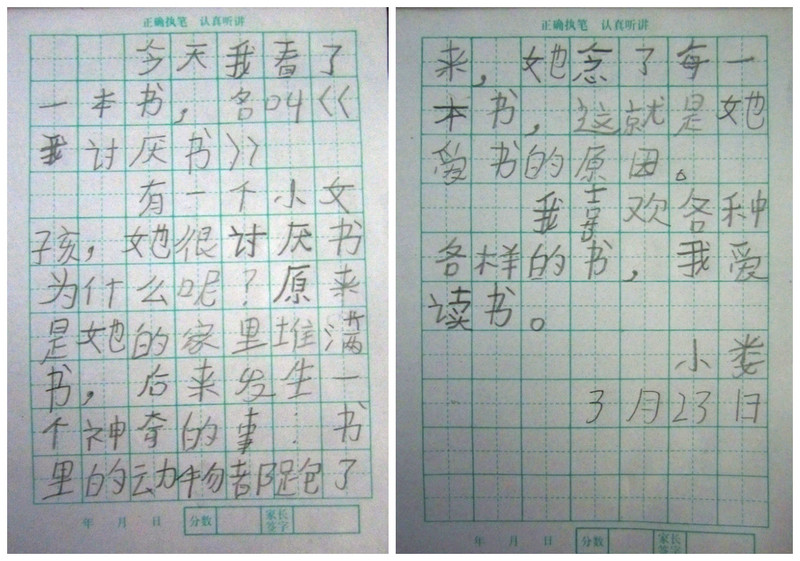 那个午后,当米娜的父母回到家时,他们看到了一个让他们震惊的画面:米娜,那个极端讨厌书的女孩,在专心致志的看书! 这是一本给爱读书的孩子的书,这更是一本给不爱读书的孩子的书!“我讨厌书,我讨厌、讨厌读书!”不知道会让多少孩子产生共鸣。可读着、读着,似乎一切就都变了,或许你也希望有那么几个小动物能跨出书本来到你的身边陪伴你;或许你也希望到书里寻一个或几个可爱的动物朋友;或许在下一本翻开的书里有你梦想中的世界;或许……只是或许……有太多的不确定和太多的神奇等待你去发现,只要你轻轻的翻开一本书,一点点的看那些文字,你会发现,一部精彩的影片会在你的头脑里上演,你就是导演,拿着精彩的剧本,选择你需要的演员,演绎你喜欢的精彩故事!这就是魅力吧!文字的魅力!! 回头想想,宝贝在读这本书前,接触到的都是一个单纯的童话故事或是纯幻想的故事,像这样在现实和幻想中穿行的故事还真的是第一次遇到。我猜,这就是让他着迷的原因吧!书本外的现实,和故事书里的虚幻,就这样简单的被融合,被穿越!也许小家伙有时也会对着书架上那一排排的书幻想着,书里的主角们来到身边,陪伴他玩耍,嬉戏的情景吧!在这本书之后,我们又看过了一些类似的书,其中最让人着迷的是《永远讲不完的故事》在给宝贝读这本书时,我都有了身临其境的梦幻感!不过小家伙对这本没有《我讨厌书》有感觉,也许是因为长篇故事完全弄懂,对他来说还有点太难了!不过我还是忍不住推荐一下,上学的孩子拿来看应该不错!! 最后,这本书推荐给,爱读书的你、即将爱上读书的你、讨厌读书的你!期待每个你,都能遨游书海,感受不一样的精彩! ~完~ 本作品未经作者许可不得转载,转载请征求作者意见。擅自转载使用,将保留追究其法律责任的权利! 个性签名