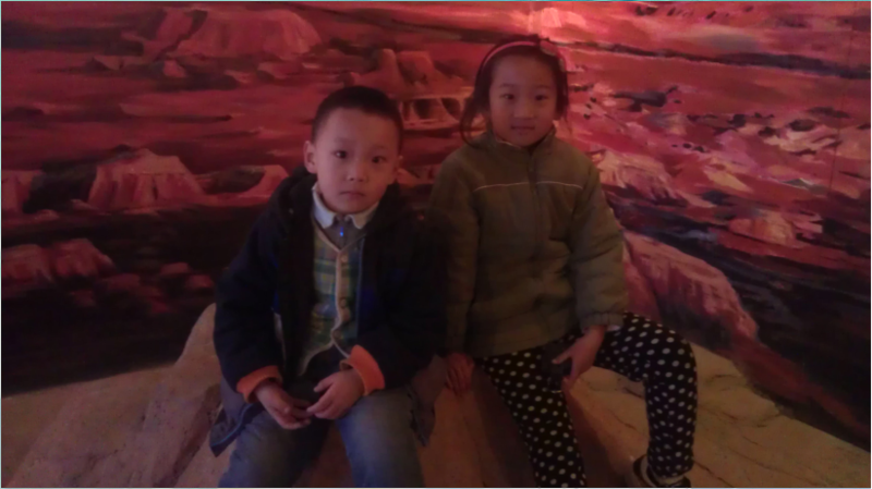 地质馆分旧馆和新馆,我们在旧馆上了个洗手间,就直奔新馆了。因为旧馆的历史太过厚重,畅还理解不了。 ![]() 新馆建筑面积近万平方米,展厅面积6000平方米,分别是二楼的《恐龙世界》、三楼的《行星地球》、四楼的《生命演化》。 ![]() 走进二楼大厅,仿佛置身于恐龙世界,一具巨大的恐龙骨架出现在面前,足有3层楼高,非常壮观。 ![]() 据介绍这具恐龙装架模型是世界上保存最完整、亚洲最大的恐龙———炳灵大夏巨龙,身高8米,体长28米,更为珍贵的是,模型的下方展出了这种恐龙的真骨化石,有十枚颈椎、十枚背椎、2枚近端尾椎等。 ![]() 在展馆最顶部,一只翼龙忽闪着翅膀,振翅欲飞。畅畅指着说:“妈妈,看翼龙”,我听错了,以为他说的是“一楼”呢,我还纠正说:“这是把一楼和三楼打通了,因为恐龙太庞大,很高,一层楼不够。” 畅匪夷所思的望了我一眼,我忽然意识到他说的是“翼龙”!哎呀,还显摆自己知识丰富呢。 ![]() 3D电影厅门口是一只张大嘴巴的恐龙,畅每次来必须走进去玩玩。这次不小心把头给撞了一下下。 ![]() 走出恐龙王国,步入三楼的《行星地球》展厅,仿佛来到了太空,幽暗的灯光下,触目所及是各种星球,当然,介绍最多的是地球。该馆通过实物标本、场景、模型、多媒体、图板等手段揭示了宇宙的起源、恒星的演化、太阳系的形成、地球的诞生、斗转星移的行星运动、层层叠叠的蓝色星球、运动不息的地球系统。给人印象最深的是雄伟壮丽的自然奇观、岩溶地貌景观、风蚀地貌景观和青藏高原的风光。如果你要想了解地震和火山是怎样形成的,在这里也能一一实现。 这个恐龙很高,一开始畅畅不敢坐上去,看表情小心翼翼战战兢兢: ![]() 现在神情轻松了: ![]() 看看有多高: ![]() 有意思的是,我正在给畅畅念墙上的文字,一个一年级小姑娘也在一旁默默的听,然后她大喊:“爸爸,我们跟着这个阿姨逛吧,她讲得好好。”于是畅畅就和这位小姐姐结伴而行,游览了整个三楼和四楼。 ![]() 和小姐姐一起看石头,光线不佳,见谅。 ![]() 一起看海洋世界 ![]() 一起漫步恐龙世界: ![]() 临近归程,小姐姐还不舍得和我们分开,问我们去哪里吃饭,要一起去吃。她爸爸说“妈妈还在某某地方等我们呢”硬是把她拽走了。 我们去地质馆出门左转的水饺店吃午饭。畅吃了一碗馄饨,逛了半天饿坏了。