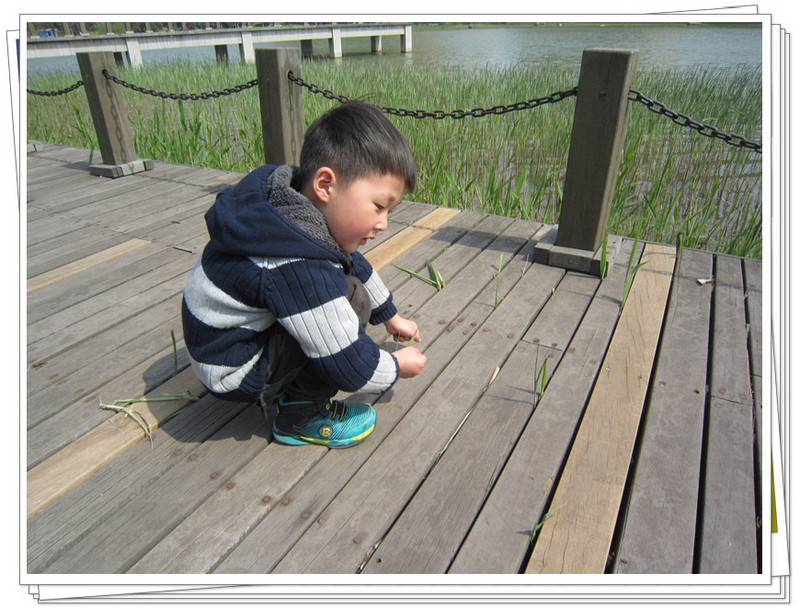 3、 菖蒲草 走到小河边,看到了一片菖蒲,要是我自己来的话,我就不知道他是菖蒲草,老妈说我小时候还帮她扎蒲包呢,就是用这些菖蒲草做成的,蒲包都是用来筑坝用的,现在都用不到了,所以菖蒲用的不多,我们都不怎么认识了。点点看见菖蒲很感兴趣,就在那玩起菖蒲草了,还感慨一句:“原来菖蒲的用处真大呢。”我们都被他的话笑倒了。在微风的吹拂下,菖蒲弯下了腰,真的印实了这句诗“三尺轻轻固阿,舞风斩碎一川波”,现在的菖蒲还不高,长 高了真能斩碎一川波浪呢。