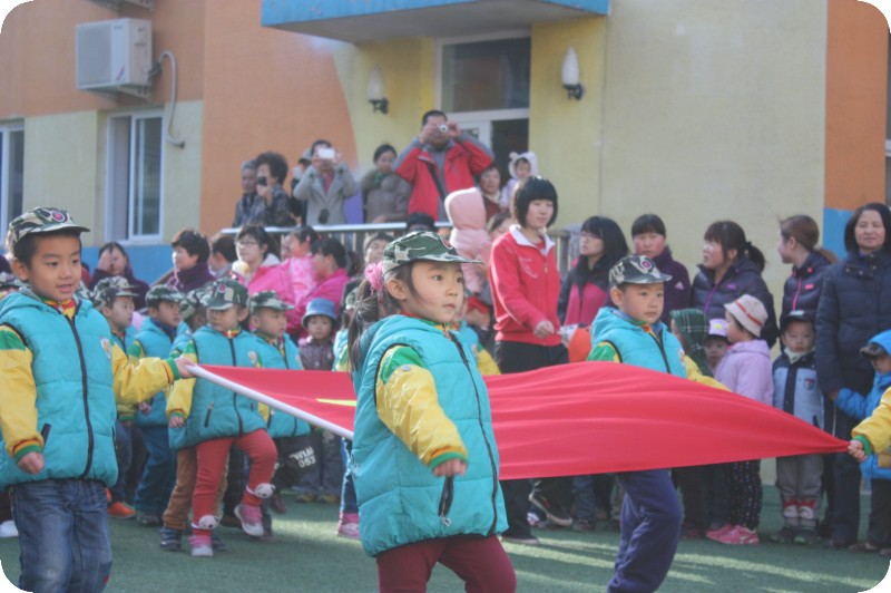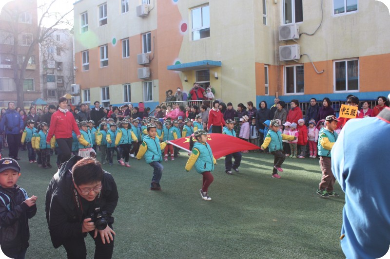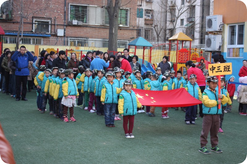 整个冬天过去了,清明节放假前,老师说4月8号要进行升旗仪式了。跟贝贝聊天的时候,我才知道,个子小小的她,竟然是护旗手呢,要扯着国旗走在队伍的最前列,真是让我惊讶。我说你走走让我看是什么样的,小家伙就假装一只手拉着国旗走起来,别说,确实走的挺有劲的,真是小瞧她了。 昨天是8号,也是周一,我因为第一节有课,无法亲眼目睹孩子们的表现,实在是感到遗憾,让贝爸去的时候一定拍些照片回来给我看。看着照片中的女儿,真是感觉她长大了,看着照片中的那些孩子们,小主持点点、举班牌的高登、和贝贝一起护旗的小梦梦、金金、腾泽、还有排着整齐队列的孩子,觉得孩子们真是太棒了,入园整整两年,老师们付出了很多,孩子们成长的很快!!作为家长的我们,怎么能不自豪呢,太自豪了!!!