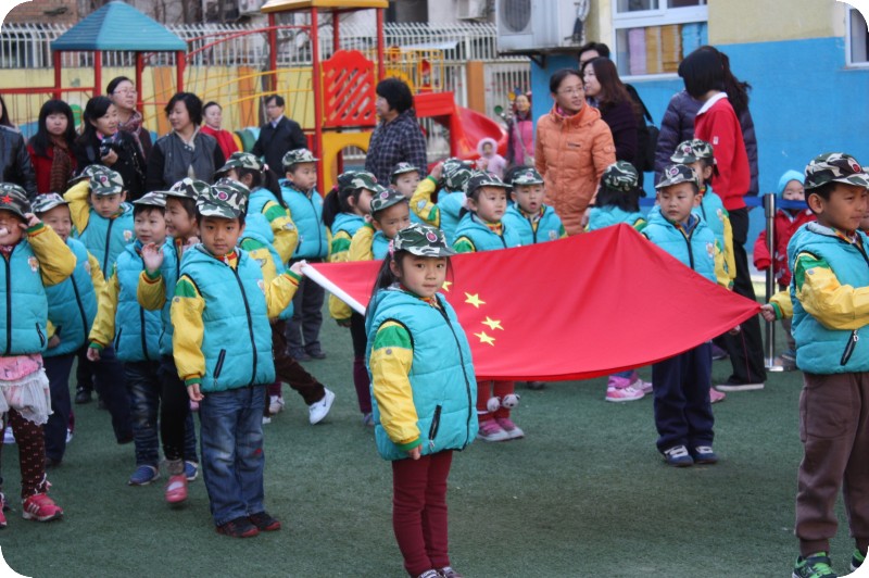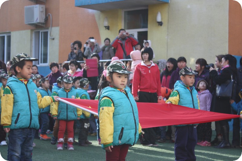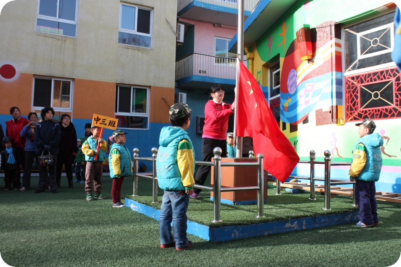 贝贝幼儿园会经常举行升旗仪式,让孩子们感受这个庄严的过程,每个班级轮流进行。去年冬天的时候,轮到他们班了,但是天气越来越寒冷,也怕孩子们冻着,所以就搁置下来。
