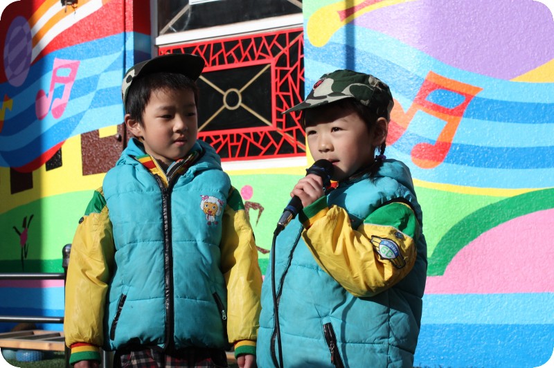 小主持点点,畅畅没说话,贝贝说是站在旁边配合一下,嘻嘻 点点虽然年龄小,但是很会说话,嗓音清脆也很大 贝贝告诉我,点点是这样主持的:“亲爱的各位家长、老师、小朋友们,大家早上好!我是中三班***小朋友,今天由我们中三班主持升旗仪式,我们感到无比的光荣和自豪!”贝贝嗓音不好,不亮,肯定是遗传了我和贝爸,我们两的嗓音都很差,所以和主持是无缘啦,其实很羡慕滴。