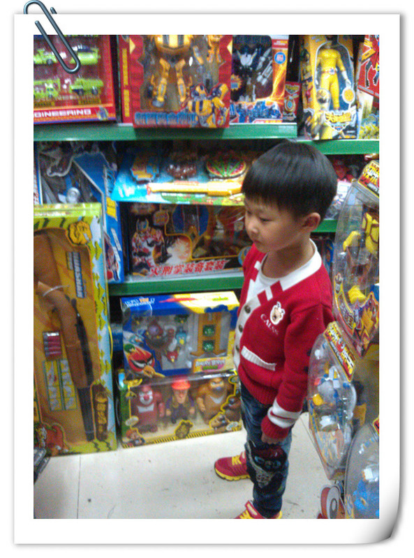 跟着姐姐去玩具店 周四的时候,朋友的一个孩子来我们家玩,点点和小姐姐一起玩过家家的游戏,一个四岁男孩和一个九岁女孩玩起了过家家,可真是有趣了。 两个人本来在楼下玩的,玩了一会儿,点点建议去楼上玩,把一篮子毛绒玩具都搬到楼上去了,点点的一个小房间就变成了他们玩过家家的场所了,点点还不愿意让妈妈上去看看,我到了楼梯上都被他们赶下来了。 到了六点钟,朋友过来接孩子回家了,小姐姐说要去玩具店买青蛙车,点点也想要去,然后我也只能跟着去了,我一开始也不知道青蛙车是什么样子,想去看一看。 我们开了电瓶车来到玩具店,这里的玩具店很小,可是东西确实多啊,小女孩要买的青蛙车就是和小小孩玩的滑板车差不多的,不过是两片滑板的,点点还太小了,玩不起来,点点就拿起旁边的滑板车玩起来。 小姐姐买了青蛙车,点点也想要买个玩具,就到里面去找了,找了几遍以后,就决定买了一个橡皮小鸟,就是愤怒的小鸟,我觉得没什么意思,就让点点不要买,点点说,这就是他想要的玩具,然后就买了。 我看到了大大的呼啦圈,想想也应该锻炼一下身体了,每天吃完晚饭转转也不错,然后就买了一个呼啦圈,还有一根跳绳,给点点练习一下跳绳,我看见中班的小朋友都开始玩跳绳了,我跳给点点看看,这样学起来会快一点吧。 买了这几样东西我们就回家了,回到家就转呼啦圈,跳绳,晚上睡觉的时候腰酸背痛啊,看来是平时缺少锻炼了,以后要坚持天天锻炼身体。