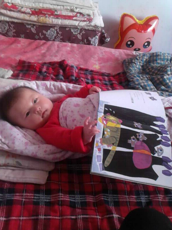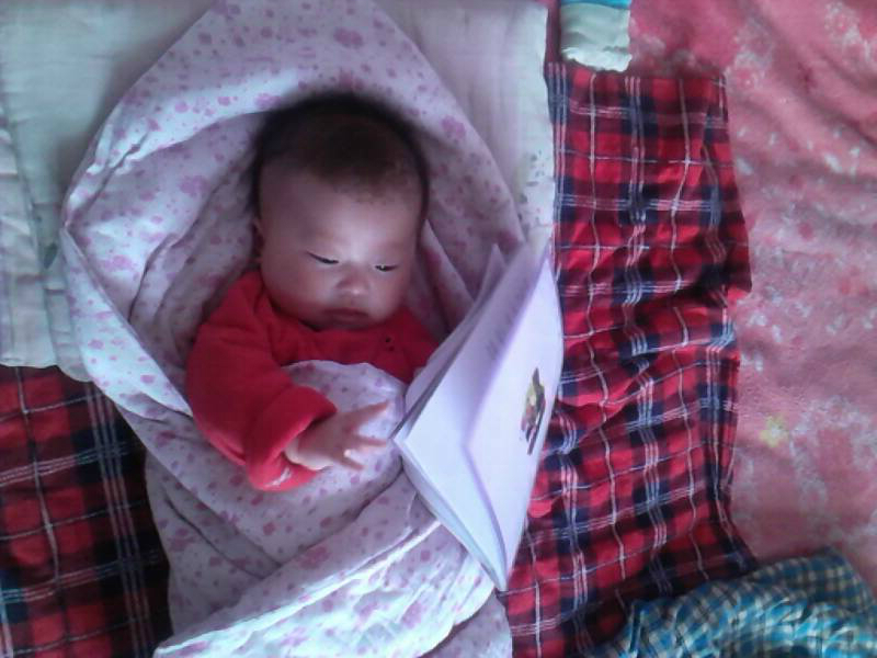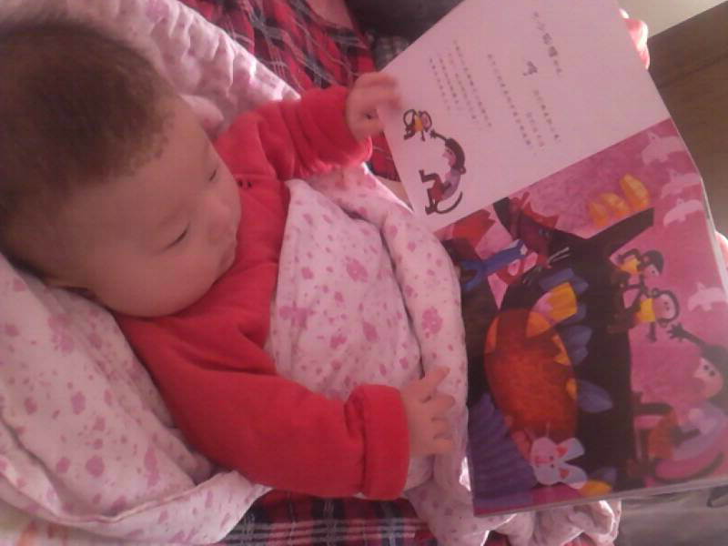 哎呀,宝宝拿着书像模像样的看着,真是好可爱啊。
