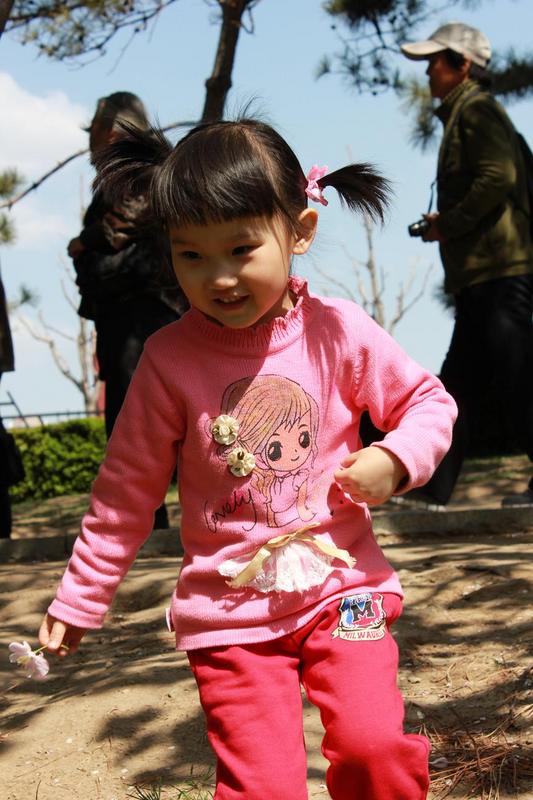 难得的风和日丽,约了小伙伴一起去看海棠花溪的美景。十点不到,爸爸就把我们送到了北土城路。一路上,闺女还不断问我:妈妈,咱们怎么老上鸟巢来啊?可不是,最近给闺女做遗传基因分析、去中国科技馆、去鸟巢儿童职业体验中心体验,23号还在鸟巢参加了凤凰传奇的活动,都是在这附近。好地方啊。 两个小伙伴一见面,闺女立刻跑过去拽成成的手,要拉小火车。成成还是很害羞,老是拽着妈妈的手不放。不过,到底是老见面,一会,两个小家伙就玩的热热闹闹了。不知道成成从那里捡到一根树枝,美美的拿在手里,说自己是孙悟空,树枝是金箍棒。闺女也想要树枝,妈妈找了半天也没有找到。闺女就有些不高兴,听说成成是孙悟空,就更生气了。说爸爸才是孙悟空呢,成成不能当孙悟空。没办法,妈妈扯下了一条柳树的树枝,送给闺女当金箍棒。这下,闺女高兴了,拿着树枝甩来甩去,还说,这是柳树的长头发。 看到树枝,成成妈妈灵机一动,三下两下编了两个树枝草帽给孩子们戴。两个小家伙都挺美的。别的家长看见了,也招呼着要编柳枝帽。估计,元大都的柳树都很生我们的气。 闺女最近对白色情有独钟,说是白色干净。这下看见白色的花,忙着跑过去,拉了一枝白色的花放在鼻子下面认真的闻着,然后还闭上眼睛,满脸陶醉的样子。看这架势,长大以后也是一个小资的文艺女青年。哈哈。 虽然我们是漂漂亮亮的小女生,但是,看见墙我们还是要上的,看见树我们还是要爬的。练练也好,说不定以后还能练成一个武林高手呢。 小桥对面有一个“北京百鸟园”,不知为什么没有看见鸟。估计,是禽流感闹的吧。小鸟们都被隔离起来了吧。不过,闺女对百鸟园的壁画还是很感兴趣的。站在百鸟园的壁画台阶上,还学着警察敬礼。真是漂亮的小警花啊。 闺女有个非常有个性的习惯,就是经常把袜子脱下来,说是“爽爽”。这不,休息的片刻,也不忘 了让小脚丫“舒服舒服。”啊,闺女,这可不是公主的行为啊,用你的话说“不符合皇室礼仪”。 大概是春光太美丽了吧,闺女忽然“诗兴大发”。人家站在“树桩”上,开始自言自语的讲起故事来。表情、动作、语言都像模像样,宛若站在舞台中央一样。 喜欢看闺女灿若春花的笑脸,也不知道小家伙怎么就那么高兴。看看那里都是美的吧。闺女,爸爸妈妈要希望你永远都这么开心!