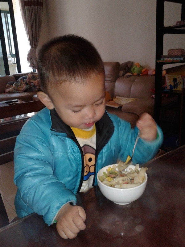 今天中午只有我和巧克力在家吃饭,确实不想搞太麻烦的,只想简单一点就好,上午出去买菜的时候刚好看到了,就买了点粉回家,在这里从来没炒过,觉得这边的粉很粘,不是一根根分开的,应该很难炒好,不过还是想试试看,如果炒出来好吃的话以后午餐就有多个选择啦! ![]() 在我娘家那边倒是经常炒这种粉条,主要是我们那边做得比较有弹性,还一根根分开很明了的,所以炒起来一点不费劲. ![]() 中午炒的时候我就尽量让粉条能分开一些,先炒完所有配料,然后下锅炒粉条的时候,放了一些之前配料的汤汁,这样一不浪费,二还可以帮助分散一下,再加了点生抽,也是含水分的,然后不停的用锅铲和筷子来摊开,又不能太用劲,如果太用劲就会被炒得很碎,结果出来后的效果还是比较理想的,巧克力小朋友吃了满满一大碗,还是自己完成的,在这里要大赞一个啊! ![]() 来看看制作过程吧! 配料很简单,上海青,火腿,鸡蛋,香葱,大蒜子. ![]() 主料:米粉. ![]() 锅里先炒鸡蛋. ![]() 炒完鸡蛋再下锅炒火腿. ![]() 把上海青也炒好. ![]() 接着锅里热上油,放上米粉,一开始就是这样堆在一起的,慢慢的用筷子摊开. ![]() 分散得差不多的时候放上其他配料就炒均匀就完成啦!这次觉得青菜放少了点,下次可以再放多点.基本上没放盐,都是生抽调的味. ![]() 出锅咯!味道确实挺不错的,呵呵! ![]() 小家伙迫不及待的开餐啦! ![]() ![]() 烫了还知道自己吹吹. ![]() ![]() ![]() ![]()
