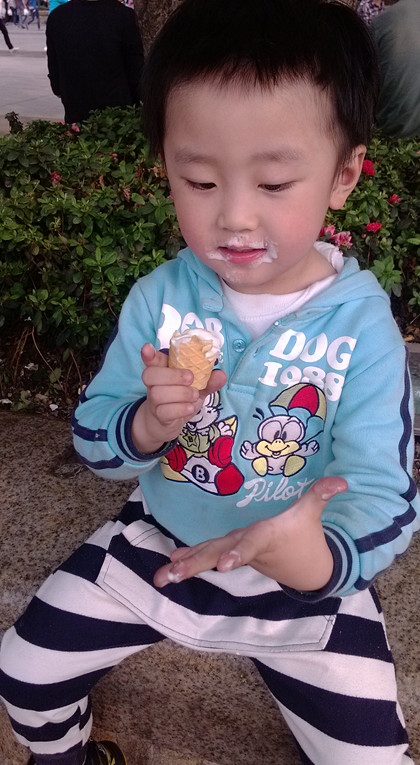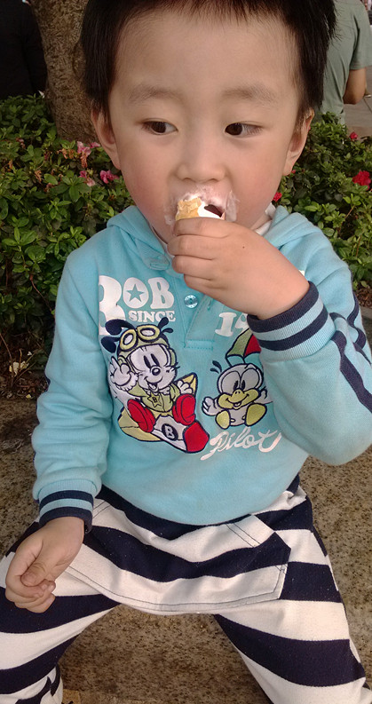 ![]() 今天下午早早的去接了罐罐小盆友,也让他在楼下和小朋友们玩了半个小时左右,正准备回家了,想起去买本杂志。于是去到车站,买好杂志,准备回家,途经一卖凉面的小摊处,于是停下买了一份,当然也给咱家的小吃货也整了一小盒。 ![]() 小吃货是屁颠屁颠的得意的自己端着盒子走,可还没走到一半的路程,我一直在告诉他慢点,看着路走,不要摔了。话还没说完,哦豁。走在我前面的小人已经摔到地下去了,就在我还没来得急扶他起来,只见他是十分的敏捷的把盒子外面的凉面,直接用手抓到盒子里面去了,速度之快,堪称神速呀。 ![]() 可已经倒在地上的东西,肯定是不能要了,可怜的吃货,是又伤心又哭得是一把鼻涕一把泪的,恋恋不舍的一步一回头的望着地上的凉面,被我连拉带哄的拉回家了,看他都还在生气中,我就赶紧把我那份给他吃了,当然是用水把辣椒洗了,才让他吃的,这才让他才彻底舒服了。 ![]() 真是可怜的娃。 只能说这就是典型的吃货呀。。。。 当时那样子是又好笑又好气,可惜没来得及拍下来。 顺便给大家看看前段时间,我们在外面玩时,罐罐吃冰淇淋的馋样吧。 ![]() ![]() 只管吃得舒服,那还管什么形象哦