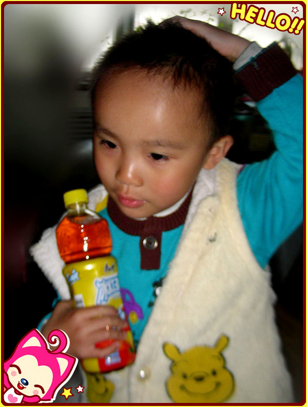 周六谦谦趣事。当天爸爸和妈妈要带着小家伙出去玩,去的地方有些远,妈妈还特意准备了一些吃的和喝的,其中喝的里面有冰红茶一瓶,这瓶子被谦谦发现后可就入了眼了,小家伙喜欢的不得了。拿着冰红茶的瓶子正着看,倒着看的也不知道瞅个啥。妈妈问谦谦:“你看什么呢?”谦谦说:“这是什么啊,怎么是红色的水啊”,原来小家伙对瓶中的红茶颜色好奇呢!妈妈告诉谦谦这是冰红茶,茶水的颜色有的是绿的,有的是红的。谦谦接着说:“我也想喝冰红茶”,妈妈说:“不行,小孩不能喝,对大脑不好,会不聪明的”,谦谦继续说:“就喝一点,不会不聪明的”,妈妈不在接茬......