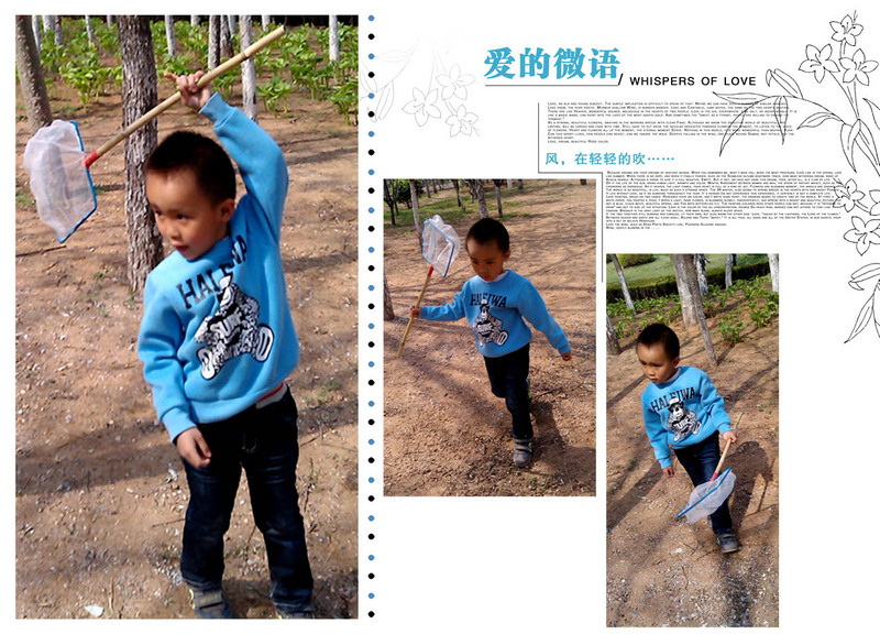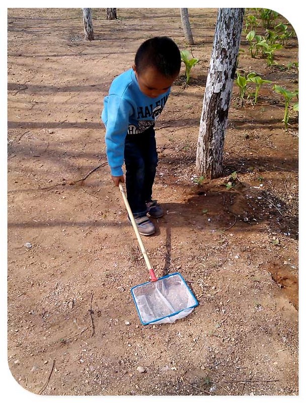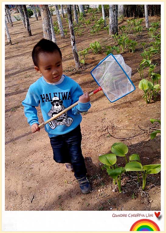 上个周末拿着捞鱼的工具带着谦谦去公园了,结果鱼网除了捞鱼的功能外还被小家伙多加利用,又是来玩土,又是来抓鸟,最后还少不了用来捞鱼,真是渔网一个全都搞定。本来这个抓鸟可不是在计划中的,只是走入公园的谦谦看到了喜鹊在树林里飞来飞去的,于是想要抓鸟的想法就应景而生了......