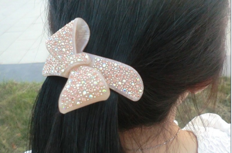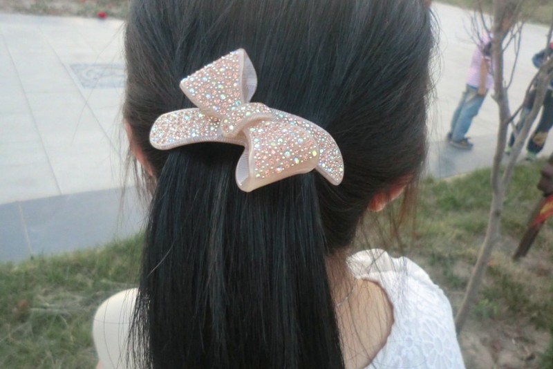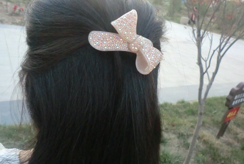 女孩子最爱长发,漂亮的头发如果没有合适的发夹,真的很遗憾,这款满钻蝴蝶结发夹给我的乌发画上了点睛之笔,让我马上变得光彩照人!发夹的质量非常的好!发夹的底部像玉石一样光滑,清晰的纹路,圆润的打磨,泛着柔和的光晕!上面点缀着漂亮的金色的钻石,犹如点点繁星,蝴蝶结的造型设计,大方,漂亮!这个夏天,有了它,我穿飘逸的连衣裙,穿正统的职业装,甚至出去游玩穿休闲一些的衣服!戴上它都会让我增辉不少哦!我注定要美丽一夏!