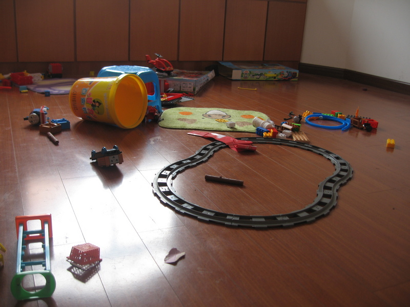 这个就是我家宝宝的玩具室,主要是玩拼插玩具的地方,还有些玩具象扭扭车自行车都放在楼下哦,看看弄的乱七八糟的,自己还说呢。看看怎么弄成这个样子?问:谁弄的啊?回答的总是很干脆:宝宝弄的。每次让他玩好了收拾起来,他总会说妈妈弄哦,宝宝累了哦。真是拿他没有办法哦!怪我没有引导好啊。 看这个墙上,都是他画的,拿了蜡笔不往纸上画,专门往墙上画,原来在墙上贴过一张大纸,结果人家不愿意,还把它撕掉了,就是要 在这个墙上画哦,等大点不画了,我再刷墙吧! 看看这个凌乱的一个角落,我把不同的玩具分开放的,结果到了他的手里全部都混一起了,有时候还问我,这个哪里去拉,哪个怎么找不到拉,我说你自己找,谁让宝宝乱放的呢,我每次说玩,他马上来一句,妈妈找。 这个是小火车的区域,他把消防车的东西都拿到这边来了,有时候还把消防车放到火车的轨道上去开,说让小火车和消防车比赛,看谁开的快呢。地上的毯子我原来是准备做脚垫的,现在拿来给他坐坐,让他坐着玩,蹲着累人。 ![]() 看这两个玩具的盒子都扔在一起了,里面的东西都给混起来了,我都不知道哪个对哪个了。还好,可以互相插着玩。我没有给孩子准备卧室,现在小呢,还是和我睡在一起,这样晚上我照顾起来方便点。我下面准备要让他养成玩好玩具把它收起来的习惯。 本作品未经作者许可不得转载,转载请征求作者意见。擅自转载使用,将保留追究其法律责任的权利! 评分记录