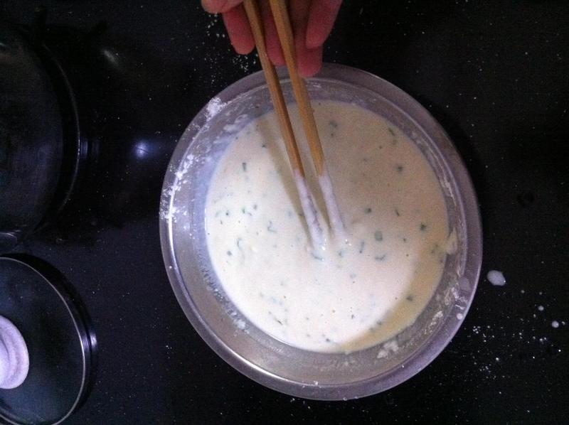 都说要抓住一个男人的心,就要先抓住他的胃。不过很惭愧的说,我这人天生就是个厨艺白痴,做出来的菜不要说老公了,就是我自己都觉得不好吃。不过,即是如此,在厨艺上我也不完全一无是处。虽然那些荤菜我都做不来,但是有一样东西还是很受家里的大小两男人的热烈欢迎滴,那就是简单易做的鸡蛋饼。 原料:面粉5勺(3个人的量),鸡蛋一个,香葱若干(喜欢香菜的还可以加点香菜),盐少许,香油数滴 步骤: 第一步:先把香葱和香菜用剪刀或刀弄成碎末,放置盘子里备用; 第二步:将面粉放进盆子,打入鸡蛋,加入香葱末和香菜末,少许盐,滴几滴香油,加水搅拌成糊状; 第三步:开火,在平底锅里倒入少许色拉油,待油八分热后,用调羹舀2-3勺面糊放入油锅里,同时用铲子轻轻将面饼摊薄摊匀; 第四步:待面饼的一面凝固后,将面饼翻个身继续煎,面饼两面略显金黄色,即可出锅。 这里要注意的是,第二步加水搅拌,搅拌的面糊厚薄程度很重要,这关系到面饼在油锅里能否摊开。否则,太厚了摊不开,太薄了没法摊。搅拌好后,可用筷子挑起面糊,如面糊自然下滑,就说明程度正好。 第三步面糊放入油锅以后,要将火势转成小火,否则火势大的话很容易煎焦掉,影响蛋饼的色泽。 第四步,蛋饼出锅以后,最好在盘子里放置一根筷子,将煎好的蛋饼悬空放置,这样做的目的一是保证蛋饼不会软掉,二是可以让蛋饼上残余的油尽快滴下, 吃起来口感不会太油腻。 现在每逢周末,只要不加班,早晨我都会早点起床给宝爸和小人儿摊上几锅鸡蛋饼。看他们吃得那个香,我心里美滋滋的,嘿嘿! 本作品未经作者许可不得转载,转载请征求作者意见。擅自转载使用,将保留追究其法律责任的权利! 评分记录