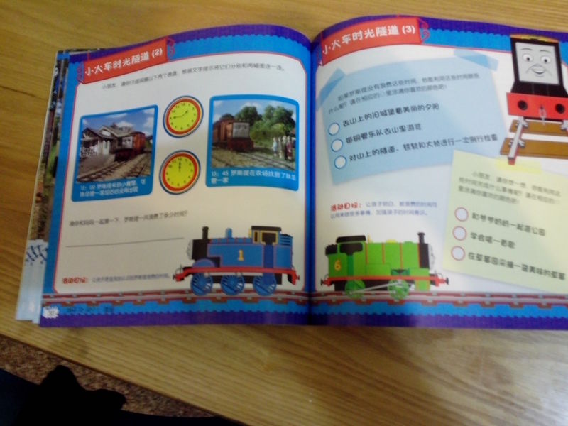 您的宝宝是不是经常一件事情还没做完,就耐不住性子想去做另一件事情?结果,非但什么事情都没做好,却还要用更多的时间来返工?怎么样才能让孩子一次耐心又认真地做好一件事,从而节约出更多的时间去完成其他事情呢?或许答案就在本书中,让小火车罗斯提和宝宝一起来学习怎样有效地管理时间吧. 这本书的内容很好,画面也很精美,现在好多的孩子都是太心急,没有足够的耐心,相信这本书会成为爸爸妈妈教育宝宝如何有效管理时间的好帮手,又是以宝宝们熟悉喜爱的托马斯小火车一家来做主人公,更是提高了宝宝们读书学习的兴趣. 故事发生在多多岛这样一个美丽的岛屿,每到周末,都会有无数游客到岛上来度假,他们喜欢坐着小火车沿着小路到山里去玩.今天罗斯提有两件重要的工作要做,首先,他要带着工人们去给小路插上路标,发为游客指明方向.然后他要去码头接胖总管一家,送他们去有很多海豹的黑湖边散步.小火车开始工作了,时间指针也在嘀嗒不停地转动着.小火车罗斯提喜欢忙碌的感觉,他也喜欢高速度地完成每一项任务,他不想让胖总管认为自己是个爱迟到的小火车,于是他拉着工人们飞快地指导他们插着路标,在他的催促下,虽然工人们有些不满和抱怨,但也用了不到一个小时就完成了任务.于是罗斯提就飞快地去接胖总管了,因为是提前到了码头,所以他的心情非常好,如约接到了胖总管后,罗斯提就把他们送到通往黑湖的起点,约好中午在小餐馆见面,但到了中午却一直没有看到胖总管一家,罗斯提开始担心,他决定四处找找看看,这一找发现问题了,路过采石场,罗斯提看见一群露营者正在搭帐篷,路过采煤场,看到三个渔夫正拿着鱼竿发愣,路过旧城堡,又看见几个滑雪者正背着滑雪板东张西望,罗斯提突然意识到,一定是中标通通指错了方向了,胖总管一家也因为路标错误而找不着了. 整个故事告诉我们当我们需要在一段时间内处理完两件事情时,可不能因为急着完成任务,就急匆匆地应付了事.一次认真又耐心地做好一件事情,比重新返工更能节省时间. 整本书的每一页都画了一个小钟表,指向不同的时间,果在读这本书的同时,还自己全部正确地答对了每一个钟表所指的时间,既听了故事,又一次复习了一下钟表,真是一举两得啊.
