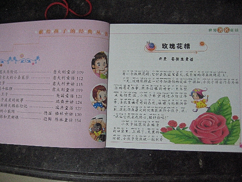 收到书有一段日子拉,本来想让宝宝把这本书看完再来写阅读心得的,可是没有想到的是我宝宝就只让我读第一个故事,我往后面翻他呀就是不同意哦,哎,没有办法,就来说说第一个故事《玫瑰花精》吧! 这个故事比较简单,但是内涵比较深。讲的是一个玫瑰花精为一对恋人伸张正义的故事。有那么一对恋人,由于姑娘的哥哥不同意,这个哥哥就把小伙子给害死了,姑娘也伤心而死。玫瑰花精联合了所有的玫瑰花精和蜜蜂王国的臣民来惩罚了凶手。在故事的最后,有提示说:通过这个故事,告诉孩子不要做坏事,因为正义永远都会战胜邪恶的。不过我估计我孩子理解不了,但是我也不怎么理解孩子为什么喜欢听这个故事。他就是让我一遍一遍的讲,他一遍一遍的听。呵呵。 我就问了:喜欢这个故事吗? 回答:喜欢 又问:喜欢什么呢? 回答:妈妈讲(要我讲,我怎么知道你为什么喜欢呢?) 又问:故事讲什么? 回答:玫瑰花精 问到最后也没有问出什么,然后我就告诉他,因为姑娘的哥哥把小伙子给害死了,姑娘也伤心的死掉了,姑娘的哥哥是个坏人,玫瑰花精就帮小伙子报仇了。宝宝点点头说:我也要帮他们报仇,哈哈! 下面说说我本人对这本书的看法,有碟很好,不过很可惜不能在DVD里 放,只能在电脑上放,不知道是不是我不会操作的缘故。里面的动画很不错。我孩子喜欢看。书上有注音,这个非常好的哦,我有时候普通话就讲不标准,现在可以看着读了,不会读错掉了哦。希望宝宝地带多举办这样的活动,让我们能读到好书哦!