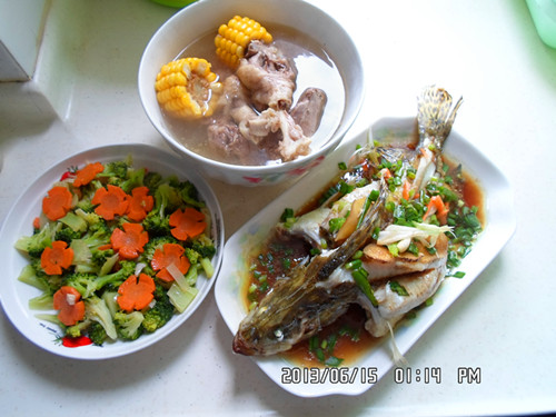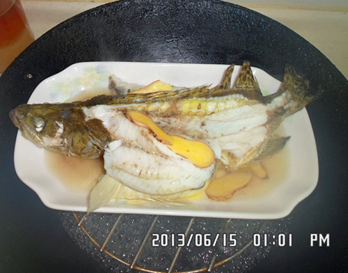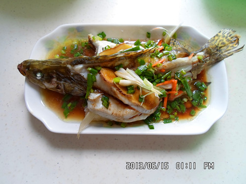 鱼杀好了再带回来的,还得再处理一下,在鱼的头部到尾巴用刀划一下,(这样的话放进去蒸的话就容易熟了,因为背部的肉比较厚哦)用盐巴在鱼的肚子里及背部涂抹均为,这样的话比较会入味。然后再碗里铺上几块切好的生姜,还有鱼背上也放上生姜片。锅里的水烧开后,就可以把鱼放进去蒸了,要根据鱼的大小要确定时间,蒸鱼没什么技术含量的,把握住时间和火侯就行了,蒸得太久了鱼肉就老了,特别是半途的时候不要老是打开锅看是否熟了。蒸好后取出来,加入适里的蒸鱼的酱油和鸡精,再放入切好的蒜末,热锅下油,再把热油撒在鱼身上就可以吃了。