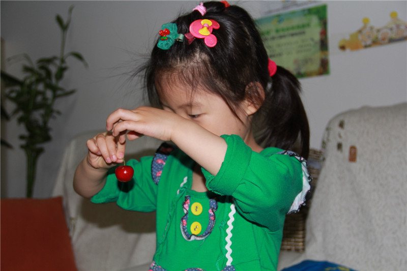 ![]() 夏天来临,各种新鲜水果上市。有句话说,吃应季的的蔬菜水果最健康。夏天了,多多吃些不嫁接不杂交的纯正水果吧!夏天应该是樱桃、荔枝、西瓜、葡萄唱主角的季节吧。我家的小吃货曾经酷爱各种水果,能吃一整个大芒果、大半个火龙果的敬仪,最近对水果却不怎么感兴趣了。 ![]() 今年夏天敬仪第一次吃樱桃是一个多月前吧,那时候60块钱一斤,姥姥花六块钱买了一两,也就几个,敬仪全吃了。要说这姥姥疼敬仪那是真疼,60块钱一斤的水果,搁妈妈我这儿,也是不会考虑的。后来樱桃价格慢慢走低,从三十到二十到现在十几块,买的越多,敬仪吃得反而越少了,每次吃樱桃都要我们往她嘴里塞,不塞小家伙是不会主动去吃的。真是搞不懂啊,这么美味的东西,搁谁能拒绝呢? 山竹,以前从来没吃过,我们老家没有,虽然后来见过很多,但一直没敢买,不知道里面长啥样,不知道味道好不好。后来有一天终于鼓起勇气,买了几个。这没见过没吃过的东西多了,总有第一次尝试的一天。放着美味不吃,老墨守成规,是该改改了。于是就有了这次山竹的品尝。 山竹这名字挺好听的,不知道从何而来,打开这硬硬的壳里头,居然跟大蒜一样,白白的一瓣一瓣的,吃起来还有核,味道清甜清甜的。就是有些不值啊,大部分重称的都扔掉了,吃进嘴里的就只有一点点果肉而已。下次再吃,把里头的瓤也拍下来晒晒,也许还有跟我一样固执不肯尝试新东西的人呢? 荔枝,过去杨贵妃最爱吃的,臣子快马加鞭才能保证新鲜,如今走入寻常百姓家,成为非常常见的水果了。不过敬仪也就吃几个,还要我们剥开来喂她,自己拿在手里不知如何是好。现在的孩子,自理能力就是差呀!敬仪在吃的方面更是差一些。没有食欲,不爱吃的孩子,自然不会想方设法去吃了,对于她,宁可不吃,也不费那剥皮的劲。
