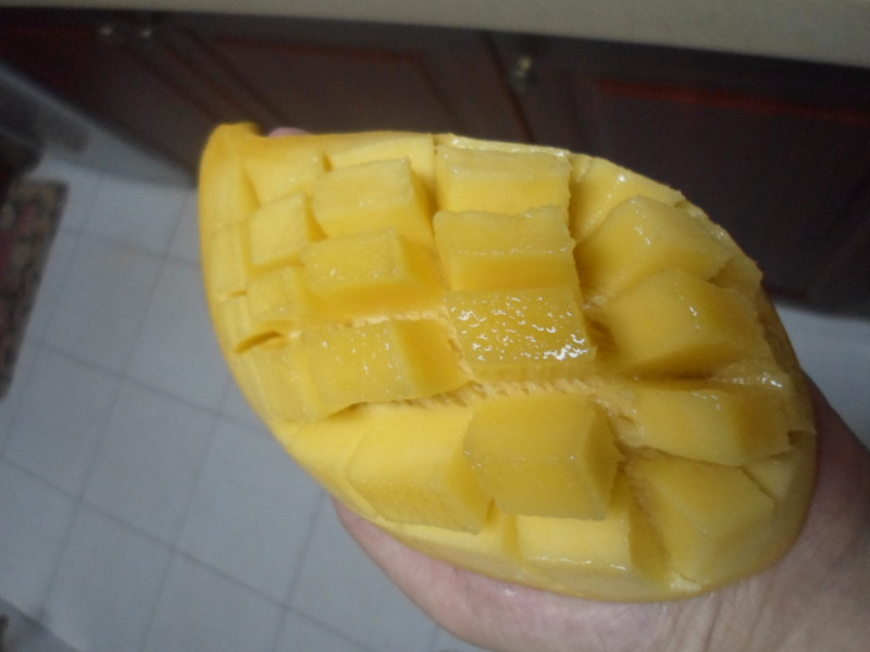 ![]() 昨天去买菜的时候,看到那种大芒果,就想买两个回来打果汁喝,这种大的芒果,果肉比较多,适合打汁.两个芒果有1.4斤重,是挺大的.以前老觉得芒果这些催熟的东西吃了不太好,前几天在电视的实验里看到,其实芒果用的催熟材料对人体还是安全的,这下可以放心吃芒果啦!而现在正是芒果上市的时候,当季的水果吃起来更放心些. ![]() 在接坨回家的路上就跟小家伙说了今晚我们喝芒果果汁,坨听了特别期待,对于这些果汁的饮品,小家伙一直都挺钟爱的. ![]() 晚上吃过饭后坨就一直说要喝芒果汁,只是吃过晚饭没多久,没有马上就做了,大概吃完饭一个多小时后才开始准备制作的,这种果汁还是挺容易的. ![]() 这是我买的两个大芒果,这样看起来好像不觉得大. ![]() 有个对比参照物,就显得大多了,长度比坨的马克杯还要长.呵呵! ![]() 切一边下来,再在果肉里面画几刀,再折起来就成这样,这样再取果肉就方便得多啦!切一边差不多有我的手掌大了. ![]() 取了一个芒果肉,觉得挺多的,所以当晚只用了一个芒果来做.留一个第二次做. ![]() 一个芒果切下来就有这么多了. ![]() 加上凉白开,再放点白糖. ![]() 按下开关,没一会就完成啦! ![]() 两小家伙一人一杯,我和坨爸共用一杯.味道还是挺美味的,特别适合现在夏天喝.如果天气热的话把凉白开放冰箱里冰镇再来打汁,那味道应该更爽! ![]() ![]() 完 本作品未经作者许可不得转载,转载请征求作者意见。擅自转载使用,将保留追究其法律责任的权利! 个性签名