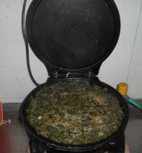 这种野菜我们老家人都叫它马时菜,学名是什么我也不确定,好像是马齿苋。小时候遍地都是,因为它们的生长力很旺盛,还能拖出去很远,有的长的大的就像家里经常用的簺子底那么大。通俗点讲就是一颗会长的像洗脸盆那么大,长的密密麻麻的。叶片很厚,种子比较多,耐旱。翻种时节把它拔掉,扔在地上,一两个星期它都不会死去。甚至沾到土的会继续成活。现在除了荒地比较多,其他地里也很少见了。 婆婆说这些野菜都是帮着它们度过饥荒的,还能降血压。因此她会时不时的让公公会老家地里给她带回去一些野菜。现在正是马时菜旺盛的时候,公公总是带回去半口袋,够婆婆吃上一个星期。 这种野菜一般都是拌面上笼蒸制的,婆婆嫌蒸的慢,就用家里的电饼铛做马时菜馍馍。 ![]() 具体的做法是:。 1.把马时菜摘干净,这种野菜没有黄叶子,只要去掉带着土的跟就行。 2.把洗净后的野菜空水,一般婆婆就等十几分钟就开始进行下一步了。 3.把空水后的马时菜剁碎,拌上面粉。婆婆弄了整整一盆,让我帮她翻馍,直到最后才想起来照相,剩了一个底,大家看看就行。 4.把拌好面的马时菜放在电饼铛上摊匀,然后盖上盖子等待着一个指示灯灭了,就翻面。接着等待几分钟就熟了。整个过程也就是7,8分钟。 看看这是熟了的马时菜馍馍,两面都被焙的金黄,其中还透着马时菜的绿色。 把熟了的馍馍放在案板上晾一会儿就可以开吃了。 吃的时候再加上一些蒜汁或者是辣椒酱,这样会更美味。 马时菜会略微带点酸味,如果嫌这些味道大的人,也可以在里面添加一些其他的青菜做配料一块儿拌面,就可以遮住这种酸味。如果家里有地的亲,也不妨试一试这种野味啊!