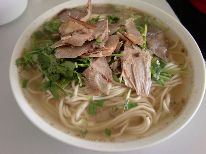 1.将牛肉泡在清水中,将血水泡出,沥干切大块,放入电压力锅,放入水,葱,姜,大料,盐,压熟烂。 2.打开电压力锅锅盖,将牛肉取出晾凉切片备用。 3.取碗,倒入牛肉汤,加盐和鸡精备用。 4.锅内下入拉面—普通面条即可,煮熟后捞出盛入准备好的牛肉汤碗中,面的上面放上牛肉片,再撒入香菜碎。 5.最后倒入醋,搅拌均匀即可。