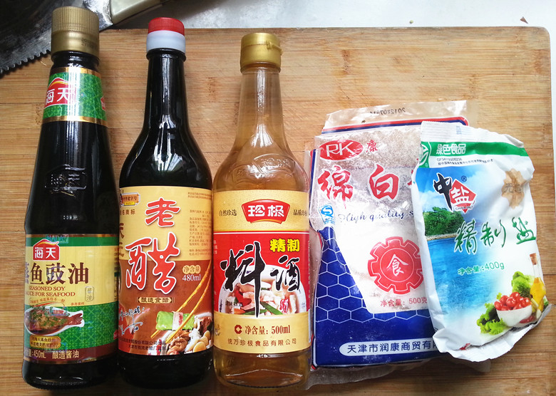 以上面介绍的方法将所有的大虾都处理好,放到盘子里备用就好啦~~ 调味品~~蒸鱼豉油,醋,料酒,白糖,食盐 蒸鱼豉油应该也可换成生抽,老抽颜色太重,影响色泽了, 蒸鱼豉油味道又好,又不会颜色太深,所以我很喜欢用蒸鱼豉油!嘎嘎~~