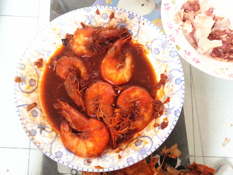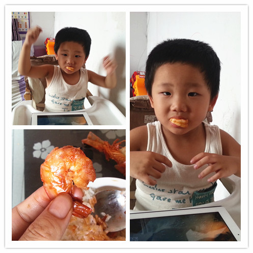 上个月参加晒拿手菜活动就曾经提到过呢,小逗妈其实最最拿手的菜要算得上是油焖大虾了哦,而且得到朋友们的好评哈!不是俺自己封的哈!呵呵!不过嘛,亲们做的话肯定也会很好吃啦,因为有个极为爱做菜也极为会做菜的朋友曾经说过,虾很好吃,想做难吃了都难!哈哈!看来他说的确实没错的啊,想做难吃都难哦~~ 主要是俺家小逗童鞋超级喜欢吃虾,小家伙不爱吃水果,不爱吃蔬菜,就是爱吃肉,爱吃虾,他一吃虾我都担心他蛋白质摄入过多咧~~哈哈!不过这个虾还是真很好,肉质松软鲜美,易消化,营养丰富。富含钙镁磷等元素,对老人小孩甚至孕妇产妇,都有很好的补益作用。 小逗很小的时候我就给他弄成泥加到米饭面条里,小家伙那么小就很爱吃呢,现在大了就更爱吃了,爸爸给他做的炸小虾,妈妈给他做的油焖大虾都是小逗极喜欢滴~~ 大家一起来看看小逗妈做油焖大虾的方法吧,看看跟亲做的方法是不是一样呢? 有更加简单好吃的方法请求赐教哦~~ 下面先来看看偶滴吧~~恰巧那天小逗要吃虾米,我给他做来吃,顺便就用手机记录下来喽~~满足了小家伙的要求~~还真好来参加活动,太棒咧~~~