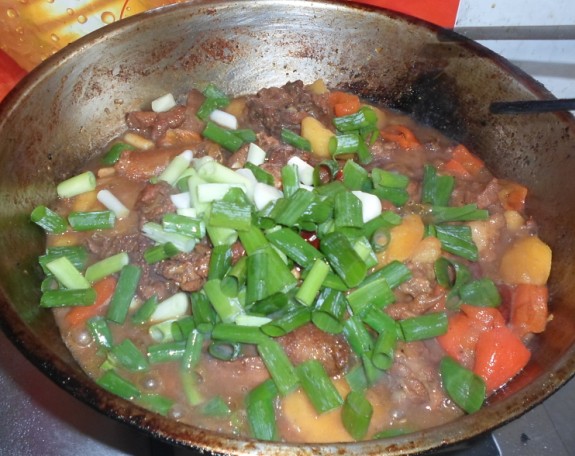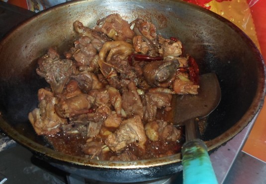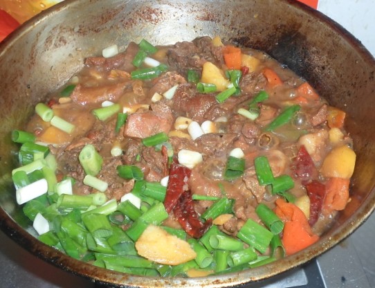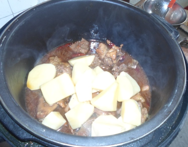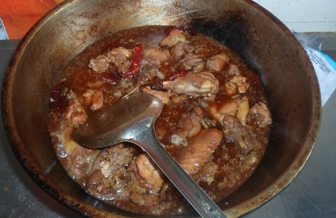 ![]() 有个能干的好老公,我也真有口福了,上次做了个草鱼泡馍,这次老公又为全家人做了一道地道的新疆大盘鸡。公公婆婆连声说做的比饭店的还好吃。我刚开始不相信,以为大家都是在恭维老公,希望他以后多下厨而已。经过自己的品尝,我才知道自己的判断是错误的,老公的手艺确实不错,与饭店里的大盘鸡有的一比。 ![]() 哈哈,耳听为虚,眼见为实,现在就来秀秀我们的厨艺吧!我也堪称是老公的好帮手啊,打打下手的事情本人还是会做的 。 所需要的材料有油,白糖,红辣椒和干红辣椒,姜片,大蒜,大葱。土豆块和鸡肉(考虑到锅小鸡肉多,我们先做半只鸡)。部分材料没有及时照上去,应该不会影响整体效果的。![]() ![]() ![]() ![]() ![]() ![]() 制作步骤: 1.放上炒菜锅,等待锅热的时候放入油,用的是热锅凉油。在锅中倒入约半勺油(使用的我们盛汤用的勺子),待油温有成热的时候,也就是手放在有过上面感受一下,有略微的热气时,就放入大约3调羹白糖。 2.不断翻动放入锅中的白糖,避免白糖在锅中熬糊,不断搅动,使白糖的融化速度更快。 3.白糖全部融化后带入事先准备好的鸡块,并不断翻动鸡块,使每一块肉都能充分入味,直到把锅里的油和白糖汁充分收干。 4.收汁完毕后在锅里加入干红辣椒翻一下,主要考虑到有孩子,我们放了适量的辣椒,大家做的时候也可以根据自己的口味来选择放辣椒的量。 ![]() 5。在锅里添入半碗白开水,等到锅滚起来的时候关火。 ![]() 6.把带水的鸡块倒入高压锅,然后在上面放入土豆块,盖上高压锅顿十分钟左右。 ![]() 7。十几分钟后把鸡块连同土豆块一并放入炒菜锅中继续收汁,同时放入新鲜的红辣椒,大蒜,姜片翻炒收汁,汤汁收的越多越入味。 ![]() 青菜是我的最爱,香喷喷的大盘鸡出炉了,再撒上点大葱做点缀,我当然不会忘记自己喜爱的青菜了,也放在一旁展示一下吧。 ![]() 撒上大葱后的大盘鸡,可惜没有盛在盘子里,是放在锅里直接吃了。 ![]() ![]() ![]() 热气腾腾的大盘鸡还冒着烟,大家看着是不是也很有食欲啊?方法很简单,可以让大家足不出户就吃到美味的大盘鸡了!