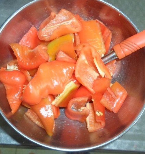 所需要的材料有油,白糖,红辣椒和干红辣椒,姜片,大蒜,大葱。土豆块和鸡肉(考虑到锅小鸡肉多,我们先做半只鸡)。部分材料没有及时照上去,应该不会影响整体效果的。