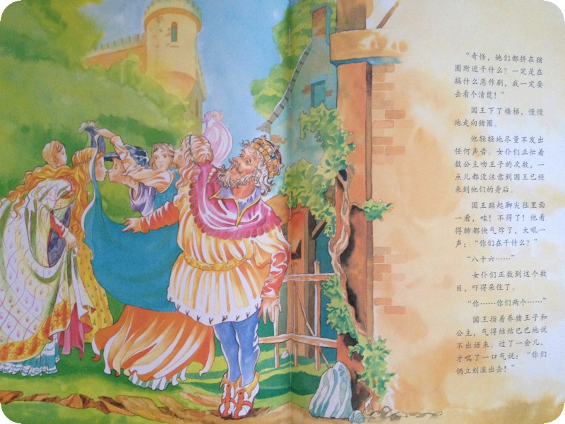 赶紧读下去,长舒了一口气,王子最后的话也非常的发人深省,摘抄过来与大家共勉“你的确让人看不起,不喜欢自然、真实的玫瑰花和夜莺,又拒绝了一个诚实、高贵的王子;为了得到一个玩具,却愿意亲吻一个养猪的男子。现在,你总算得到报应了!” 王子自然没有答应公主,可怜的公主无家可归了!虽然王子耍了一些计谋,但也反映出了公主的无知和愚蠢。