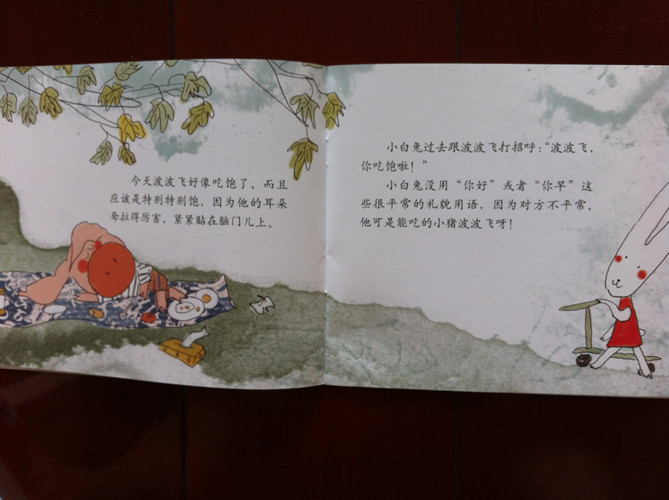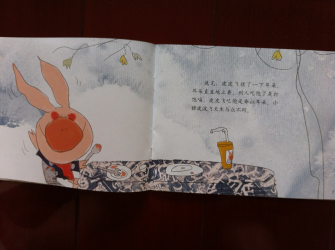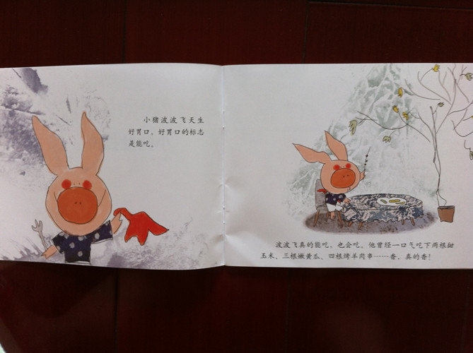 快乐小猪,这个名字,一看就知道,这个小猪是个能带给人快乐,本身也很快乐的猪。快乐就是能让人心情愉快,做事积极的源泉。 小猪波波飞,是一只有着长耳朵的猪,这和我们通常见到的猪,不一样,它的两只耳朵有点象兔子一样长。可是这样并不影响它的快乐。它的两只长耳朵是用作用的。因为波波飞是猪,所以很能吃,那么它的耳朵,就代表着吃没有吃饱,如果吃饱了,它的耳朵就会耷拉下来,如果没吃饱,它的耳朵就会竖起来。 波波飞还有点象我们家小朋友不仅爱吃,还很喜欢吃。看到什么都想吃。小猪波波飞的故事就像发生在孩子周围的故事,让孩子在它的世界里找到了自己的影子,有一种很亲近的感觉,所有的故事都是贴近生活的,一点不陌生,甚至都有相同的情景和体验,这让孩子接受起来没有距离,容易产生共鸣。 快乐小猪波波飞《小猪肚拉拉》讲述的是,小猪波波飞天生好胃口,好胃口的标志就是能吃,波波飞一口气能吃下两根甜玉米,三根嫩黄瓜,四根烤肉串,,,吃的那么香。这些还不算完,波波飞说:啥时候吃的耳朵耷拉了才吃饱。人家是吃饱了打嗝,波波飞是吃饱了耷拉耳朵,天生的与众不同。今天波波飞好像吃饱了,耳朵都耷拉了。小白兔过去跟波波飞打招呼,可是波波飞却没有好气得说,饱什么饱,没看我捂肚子吗。小白兔挺好奇,兔子都好奇。波波飞告诉小白兔它都吃什么了,哇塞真能吃。此时小白兔笑了。说原来你是闹肚子了,好猪也怕三泡稀。波波飞捂着肚子,小白兔快告诉我厕所在哪里。波波飞去完厕所,耳朵有竖了起来。小白兔吃惊的问,你的耳朵有竖了起来,是不是又饿了。波波飞感觉把耳朵耷拉下来,说,不敢不敢,我要去吃黄连片。小白兔拍手笑道:黄连片专治杜拉拉,波波飞很快好起来。此时小猪波波飞,明白了,我再也不贪吃,再也不当杜拉拉。 小猪波波飞故事简单易懂,语言风趣幽默,不时的还有押韵的句子,读起来朗朗上口,孩子看的很轻松,很欢乐,遇到好玩的对话和动作,孩子还不由自主的笑出了声。画面设计非常讨孩子的审美观,颜色鲜艳,画面可爱,一看就是一本关于孩子创作的童书。 故事很简单的告诉小朋友一个道理,吃多了,乱吃,都会闹肚子的。尤其是现在夏天到了,如果乱吃东西,很容易就坏肚子了。那么怎么办,美胖告诉我要吃黄连片。恩,故事没有白读。孩子又多知道了一件事,就是什么药治疗坏肚子。