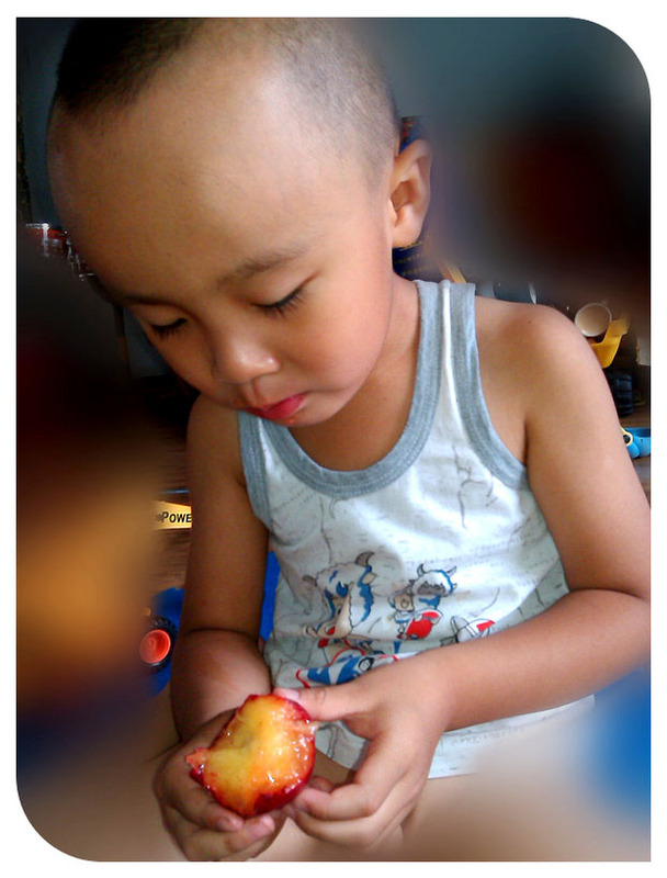 小家伙吃李子很有速度的, 这李子实在也是熟透了,吃的很容易,尤其是甜啊,吃起来更痛快了