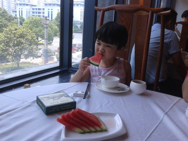 ![]() 上个周六坨爸请他的学弟们在湘侬寨吃饭,买的时候送了一张100块钱的大厅消费券,只能在大厅消费,没有金额限制,但不找零,每桌只能用一张. ![]() 周六上午去会所参加了刨冰季活动,一路走回家晒得人都不想再动了,就跟坨爸说不想煮饭了,干脆去把这张券消费掉吧!再不用过一个星期就要作废了,坨爸也满口答应. ![]() 其实对于这里的菜,有一个叫鸡鸣奥运的,是坨特别喜欢吃的,上次来吃的时候就点了这个菜,主材料是鸡,应该是用下油炸过后再去加入调料去蒸的,不辣,而且吃起来鸡肉很酥,坨那天就吃了一个鸡腿,两个鸡翅膀,最后连饭都吃不下了,可见这家伙有多么的喜欢吃. ![]() 周六去的时候又点了这个菜,另外点了一个豆腐,一个荷包蛋焖丝瓜,再加个红薯叶,四个菜够我们吃了,最后其他菜吃完了,那个鸡鸣奥运倒是没吃完打包回家了.坨当天也吃了一个鸡腿,一个鸡翅膀,因为这个菜最后上的,后来也实在吃不下了,最后只好打包回家. ![]() 吃完饭买单,除了用上券后花了82块钱,还是挺划算的,呵呵! ![]() 餐前水果西瓜是免费送的. ![]() 等待上菜中先吃水果吧! ![]() 这西瓜的味道还挺不错的. ![]() 巧克力也来一块. ![]() 很甜的西瓜啊! ![]() 坨爸好像在笑巧克力西瓜的发音不准,好像把西瓜皮说成七八皮. ![]() 虽然被老爸笑,但西瓜还是快吃完了. ![]() 终于上菜啦!先上的青椒焖豆腐,其实一点都不辣,两小家伙都挺喜欢吃的. ![]() 不过豆腐里面还挺烫的. ![]() 丝瓜煮荷包蛋,这里还可以当成一个汤. ![]() 在喊着要吃煎蛋. ![]() 勺了点荷包蛋和丝瓜吃. ![]() 红薯叶. ![]() 等到最后这个鸡鸣奥运终于来了,听说是08年北京奥运出现在湘菜系列里的一道菜,还是奥运冠军龙清泉最喜欢吃的. ![]() 吃到鸡腿的满意状. ![]() 还不忘摆个鸡的造型,哈哈! ![]() 巧克力正在吃鸡腿肉. ![]() 还不忘把手指的美味吮掉,太搞笑了. ![]() ![]() 完 本作品未经作者许可不得转载,转载请征求作者意见。擅自转载使用,将保留追究其法律责任的权利! 个性签名