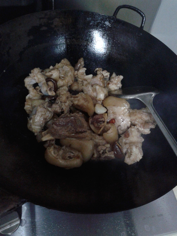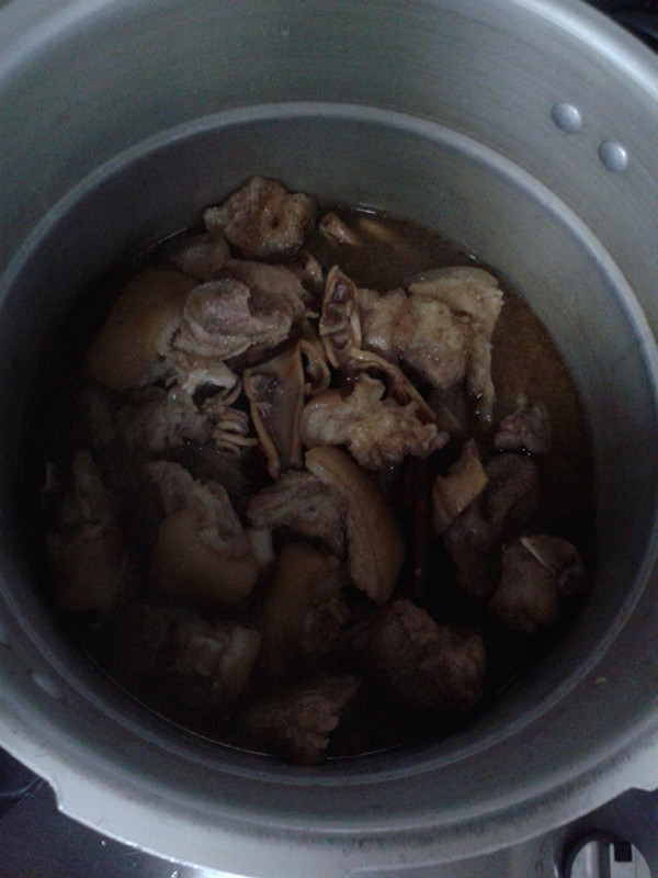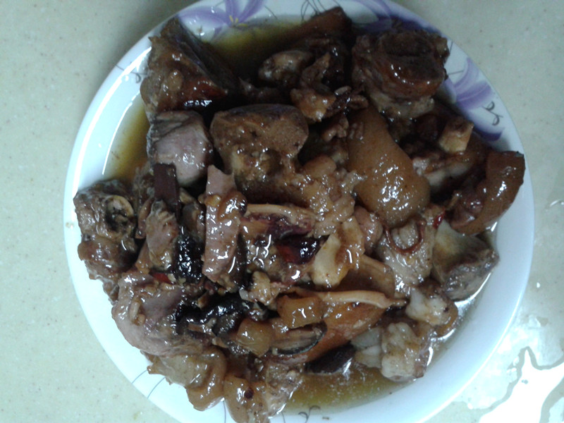 ![]() 因为天气太热,最近不太喜欢做菜了,更没有什么心情去把做的菜拍下来了. ![]() 今天找了下相片,竟然有前两个月做的一个炖猪脚没有发过贴的,今天就拿来参加拿手菜的活动吧! ![]() 炖猪脚其实是我娘家那边经常做的一道菜,特别是过年过节的时候,桌上肯定会出现的,以前生活没那么好的时候,还只有过年过节才能吃上呢!现在倒是容易了,只要想吃都能做一餐来吃. ![]() 在这边吃猪脚一般都是红烧,就是用高压锅先把猪脚炖一下,然后再放上调料来煸炒,这样的猪脚做出来其实味道也挺不错的. ![]() 对于我来说,有时也想起吃点家乡的东西,所以做下以前在家里吃的东西也是经常有的. ![]() 下面就来看看原料和制作过程吧! 主材料:猪脚半边,大概两斤重,一定要卖肉的老板给切成小块,要不然自己还真难切开,我特别喜欢这边的猪脚,买之前基本上都是烧过一道表皮的,所以不会出现猪毛在上面.以前不喜欢吃猪脚是因为老是出现残留的猪毛,看着特别恶心. ![]() 配料:香菇,鱿鱼干泡发.这种鱿鱼干是在娘家带过来的,在这里买的都没有家里的新鲜. ![]() 接着香菇切成块状,鱿鱼干也切成小块,还准备了大蒜,这个只要拍打一下就行了. ![]() 另外备点八角和桂皮,还有几个朝天椒,有点辣味还是不错的. ![]() 开始制作啦! 洗干净的猪脚放开水里烫一下,去掉一些血水. ![]() 另外锅里热油,放进大蒜和朝天椒烛香. ![]() 放入鱿鱼干和香菇煸香. ![]() 再加入沥干水份的猪脚. ![]() 煸炒后再加入生抽,醋,鸡精等调料. ![]() 然后倒入高压锅,再加入适量的水,其实只要加一碗水就行了.这样炖出来汤不会太多,这还是后来我听堂妹说的,我也实验过放少点水好吃些,炖出来筋道一些. ![]() 高压锅上气后中火炖10分钟,再关小火炖6分钟,就可以出锅了.香气扑鼻的猪脚就出来了. ![]() ![]() 完 本作品未经作者许可不得转载,转载请征求作者意见。擅自转载使用,将保留追究其法律责任的权利! 评分记录