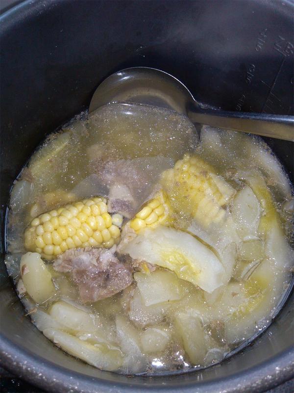材料:小排骨、玉米、冬瓜 辅料:盐、葱、姜 做法:1.准备好所有食材,先将排骨剁成块状,长短随意。 2.玉米去皮、去丝,切成小段。冬瓜去皮,切小块。 3.葱切段,姜切片 4.先把小排骨洗净,凉水入锅,煮开后,撇去浮沫,待浮沫基本没有了,再关火捞出待用。再把煮好的小排骨和切好的玉米一起放入锅中,加水。水不用太多,只要没过食材就行了。再定到肉档或定时50分钟就可以了 5.时间到了后,打开盖子,再加些盐。美味香浓又不腻的玉米冬瓜排骨汤就好了。 怎么样,一点都不难吧? 本作品未经作者许可不得转载,转载请征求作者意见。擅自转载使用,将保留追究其法律责任的权利! 评分记录