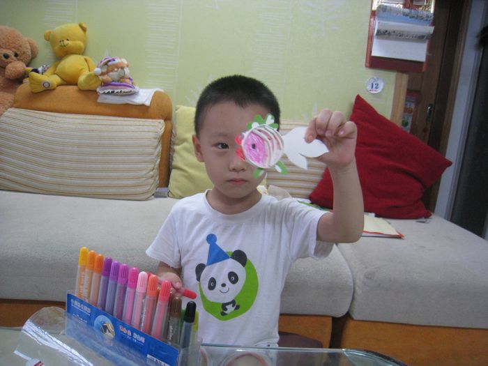 宝贝的小手可真巧啊,用起剪刀很灵便。做到真好看。
