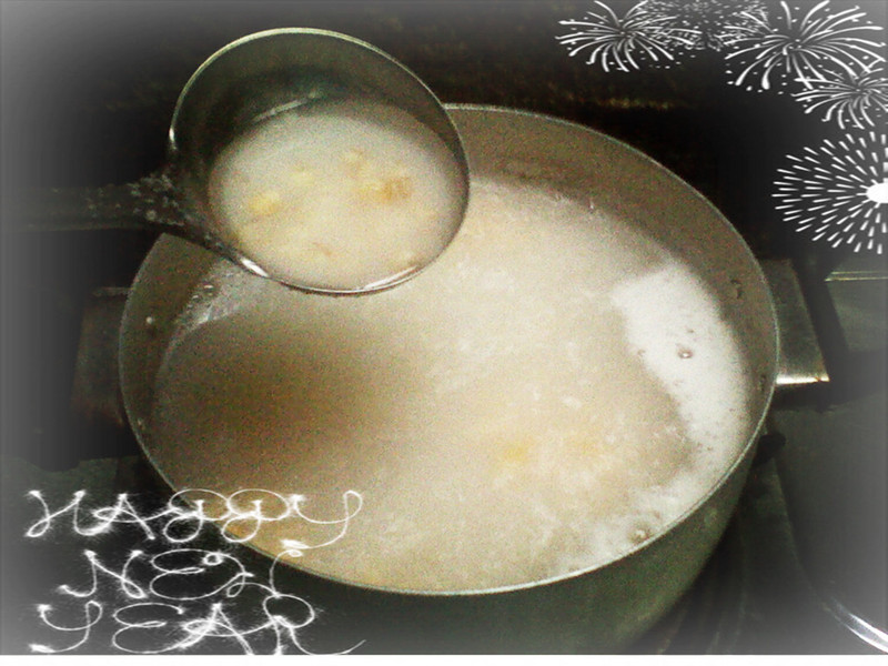 还有米面比较容易打稠,所以下面的时候不能下多。一边下面一边看看稍微有点稠度就可以了。要不然弄出来的就厚厚的。煮开后用小火在煮五分钟就可以了。