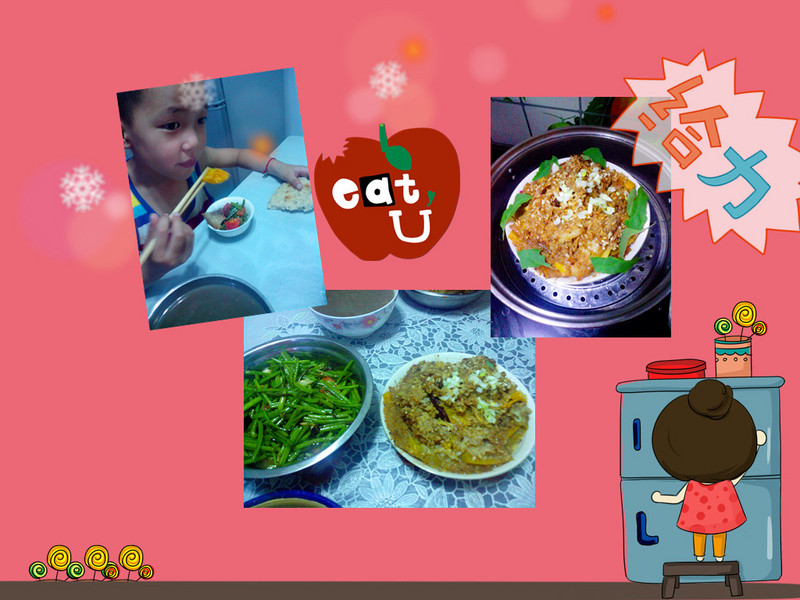 比那个黄豆粉做的复杂了,这样的没做过。蒸菜很费时,但,低油,健康。