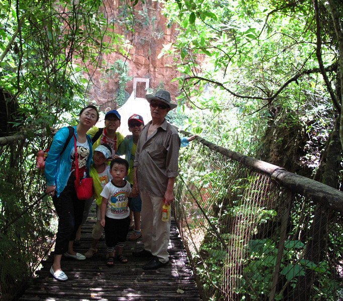 ![]() 我们到云南的第2天,本来我四爸说去他们那里的一个温泉,说是可以游泳,而且很不错的,可罐罐一听说游泳,马上就叫‘我怕,我怕,不去。’只好算了,而我妹妹竟然拿了一个笔记本出来,上面密密麻麻的写了几大篇,据说是专门在网上查询了的,有什么好玩的地方,有什么好吃的。于是在她的提议下,我们就去了这个(个旧蛮耗绿水河热带雨林),据说网上的评价还很不错,说是很多人都去过的。哎,结果这次是最失望的一次,也是最辛苦,最累的一次爬山。 ![]() 我们从我四爸家坐车2个多小时才到山脚下,我还因为已经出了个旧,其实还是在个旧的,只是在个旧红河的尽头了。这是我们刚到山脚下,正准备上山去,结果竟然被拦住了,是什么原因呢?看这张相片就能看见有大型拖车上山,原来是去参加救援的,说是刚刚上面才翻了一车。这个大型吊车是上去把车子吊起来的。 ![]() 在等待的时间中,小家伙们对于地面的小石头很感兴趣,在那里反复玩了好久,因为家里没这样的小石头,呵呵 ![]() 看看,还很醒目的标志,绿水河热带雨度假。哎。看完我后面的就知道我为什么叹气了。 ![]() 我们在山上的路口处等了半个多小时才上去,其实我们也太老实了,当时就跟着那救援的吊车走,直接就通过出事地点,害我们老老实实的等了这么久,才慢慢排队上去,因为后面人家肯定是封路了。等到后来经过出事地点,得知司机肯定是没了,车子也差不多报废了。哎。只能怪司机自己开快了,所以,开车的千万不能大意呀。 ![]() 我们一直开到大门口,其实应该说没有专门的大门口,只是有人在那里住家,顺便看守着,也在那里买的门票,18一个,罐罐和姐姐免票。一进去就看见有野生的桂元,而且地面上到处都有,掉地上的桂元,两边是绿树,当时还觉得很不错,很好的心情。 ![]() 旁边这房子可是发电厂,而且还是从人家厂房处开始往山上走了。 这里差不多就是红河尽头了,连水都是这样红 ![]() 刚一上去,就必须要经过后面的索桥,因为她们走在前面,桥就摇晃得很厉害,罐罐吓得是连连说‘妈妈,我怕,我怕。’只好等她们都过去完了,我才牵着罐罐的手,慢慢走过去的。还好,因为有我牵着他,罐罐虽然害怕,但还是很信任我,跟着我一起走过去 ![]() 索桥旁边还有这小型的瀑布呢 ![]() 我们进去时,看门的告诉我们,说是2.5公里,结果我们走了3个半小时,(简直比我去爬张家界还要累。)里面全是这样的崎岖山路,而且因为经常有阵雨,地下的路特别的滑,旁边就这样的铁链,还很都地方都没有呢,里面除了我们一行4大3小,根本没有看见任何一个人,和网上说的完全是两回事,这个热带雨林根本就是才开发出来的,沿途连卖水的都没有,还好我们自己带有水,而且连休息的石凳上都有毛毛虫在活动。 ![]() 看看,全是这样的上山路,把我们全部都累得不行。而且我因为在火车上感冒了,人又特别不舒服,害得我中途都吐了两次,而把我的背包给我妹妹了,本来她还想帮我牵着罐罐走,可罐罐实在是太厉害了,走得太快了,因为他的鞋子不滑,可他姨妈的鞋子就有点滑,肯定就跟不上他的节奏,还是我牵着罐罐走了。中途虽然罐罐走累了,想叫我抱他,可我都累得不行怎么抱他嘛,在我的好说歹说下,罐罐小朋友还是很坚强的自己走完了全部路程。非常棒,毕竟罐罐是从小就跟着我们到处旅行,还是比一般的小朋友走路要厉害多了,这可是从小就锻炼出来的,呵呵 ![]() ![]() 山路的旁边就是悬崖,下面还有很急的河水。 ![]() 看他们的衣服都是湿的 因为河水很急,我都不敢放开罐罐,怕有什么就麻烦了。呵呵 ![]() 而且我们竟然还遇见有处滑坡,山上的石头滑下来了,把路都挡完了,还是我们从石头上走过去的,当时都很担心再次滑坡呢。还好,虽然哥哥在中途因为被树枝碰到头,大哭了一场,后来又摔了一跤,屁股有点小痛而以,其它都没什么大的问题,最主要是安全回到大门口。 回到大门口车子等我们的地方,赶紧拿干净的一套衣服换了,大家的衣服是全部都湿了的,提着都重了好几斤的那种,真的是超级辛苦,也是特别失望的一次爬山经历