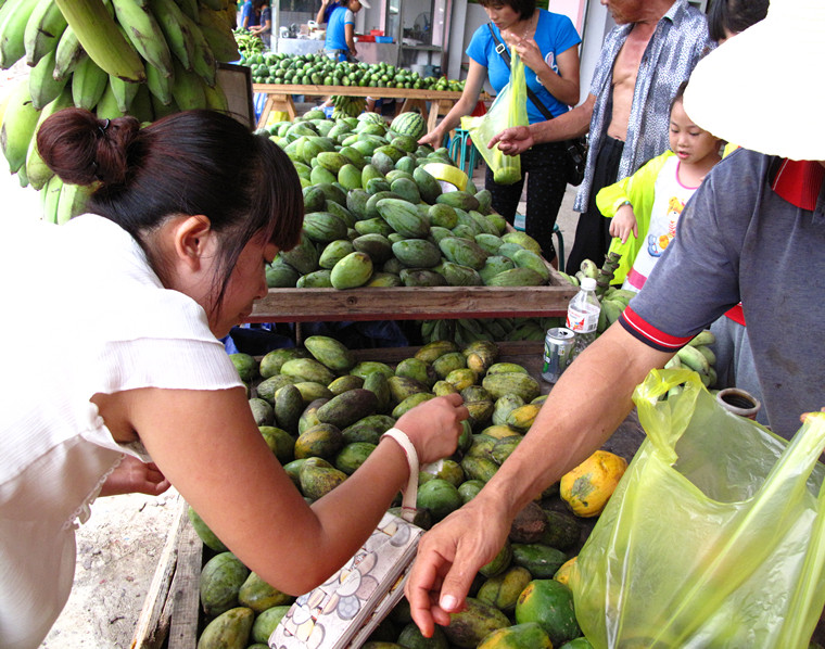 ![]() 这次去云南竟然意外的发现云南的水果也是超级便宜呀。到处都是满山坡的香蕉林,芒果林。这是我们去了绿水河热带雨林出来后,在山下的马路边看到的水果摊,香蕉都是这样挂起来卖的,和我们家里面的卖法都不一样的,香蕉的价格没有问,反正很便宜的 ![]() 这是给我们开车的美女司机,她自己都买了两大包芒果呢 ![]() 最边上看起来最青的那种芒果才一元一斤,而美女司机买的芒果要稍微成熟点了,也才1.5一斤。 本来我们也想买点的,结果我四爸已经打电话问过了,说是四婶已经在家里已经买好了,只好算了。 ![]() 这种桂元也才4一斤,而我们家里起码要8元一斤 ![]() 这是我们买的一大束的桂元,这都有4斤了,够重的吧,呵呵 ![]() 这是四婶在家附近的超市买的芒果,这种要3元一斤,四婶还觉得很贵了,这种我们这里起码是10元一斤了。物价完全不一样呀 ![]() 这种要稍微青点,这种是2元一斤,不过这种和上面的3元的比较起来,还是3元的要好吃多了。 ![]() 我们还是在后几天出去玩时,在公路边的水果摊去买了一箱芒果,实在是受不了这么便宜的价格诱惑,当时还是拿矿泉水的纸箱子装的一箱,有26斤呢。回到我四爸家,我四婶还专门去找了2个小的泡沫箱,分开装的,还有一盒小的牛奶箱子,小箱子就罐罐的姐姐抱着的,大的箱子就我们自己提了,这样我们才能刚好带回家呢,呵呵 这次在云南可是吃够了芒果,每天都是好几个呢,真的很好吃的,完全是真正的价廉物美呀,绝对的超值呀。